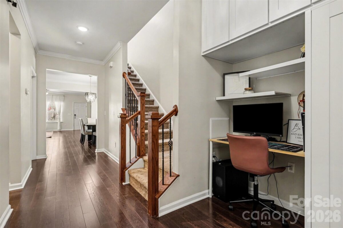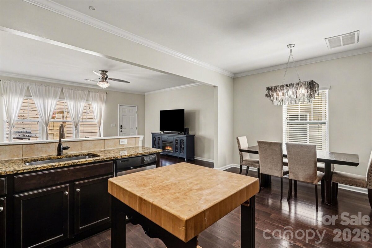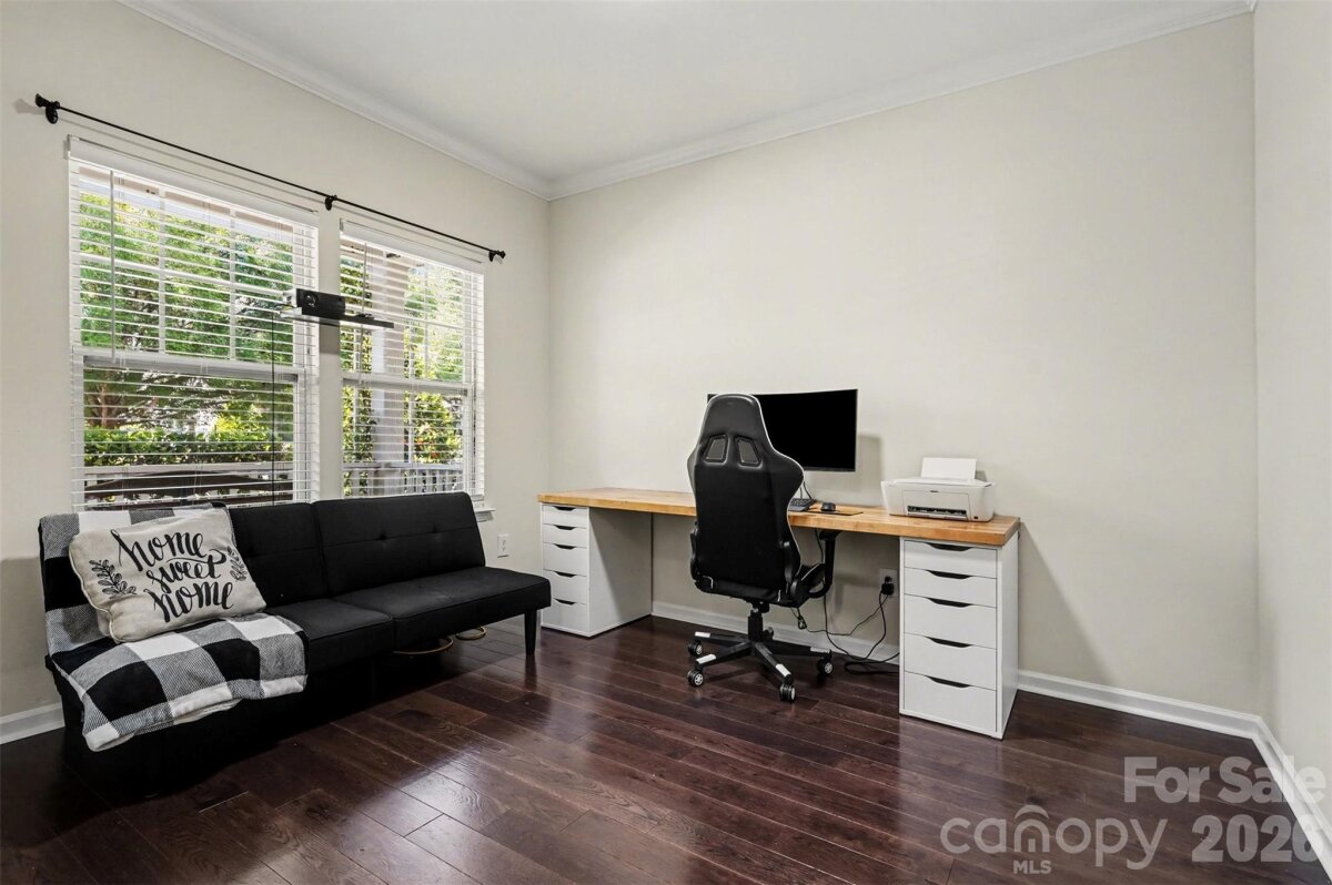 Step into a light-filled retreat where modern updates meet a perfectly flowing floor plan. This move-in-ready home has been revitalized with fresh interior paint and recently replaced flooring throughout all levels. A sophisticated private study, accented by a stylish barn door, offers the ideal environment for a quiet home office or library. The heart of the home is the open-concept kitchen - complete with granite countertops, a gas range, and generous cabinet space, which connects effortlessly to a spacious living area with views of the private fenced-in backyard. The second floor features an expansive primary suite with a large walk-in closet and a generous ensuite bathroom, alongside two well-appointed guest bedrooms and significant storage space. Ideally located just minutes from the charm of Main Street Pineville and local shopping and restaurants, this home perfectly balances modern style with peaceful outdoor living and close proximity to everything you need. Buyer's agents appreciated!!!