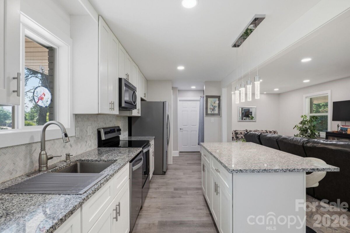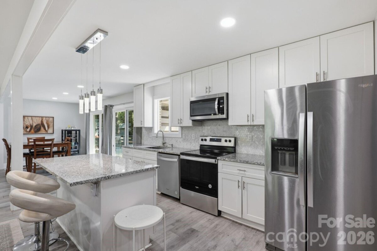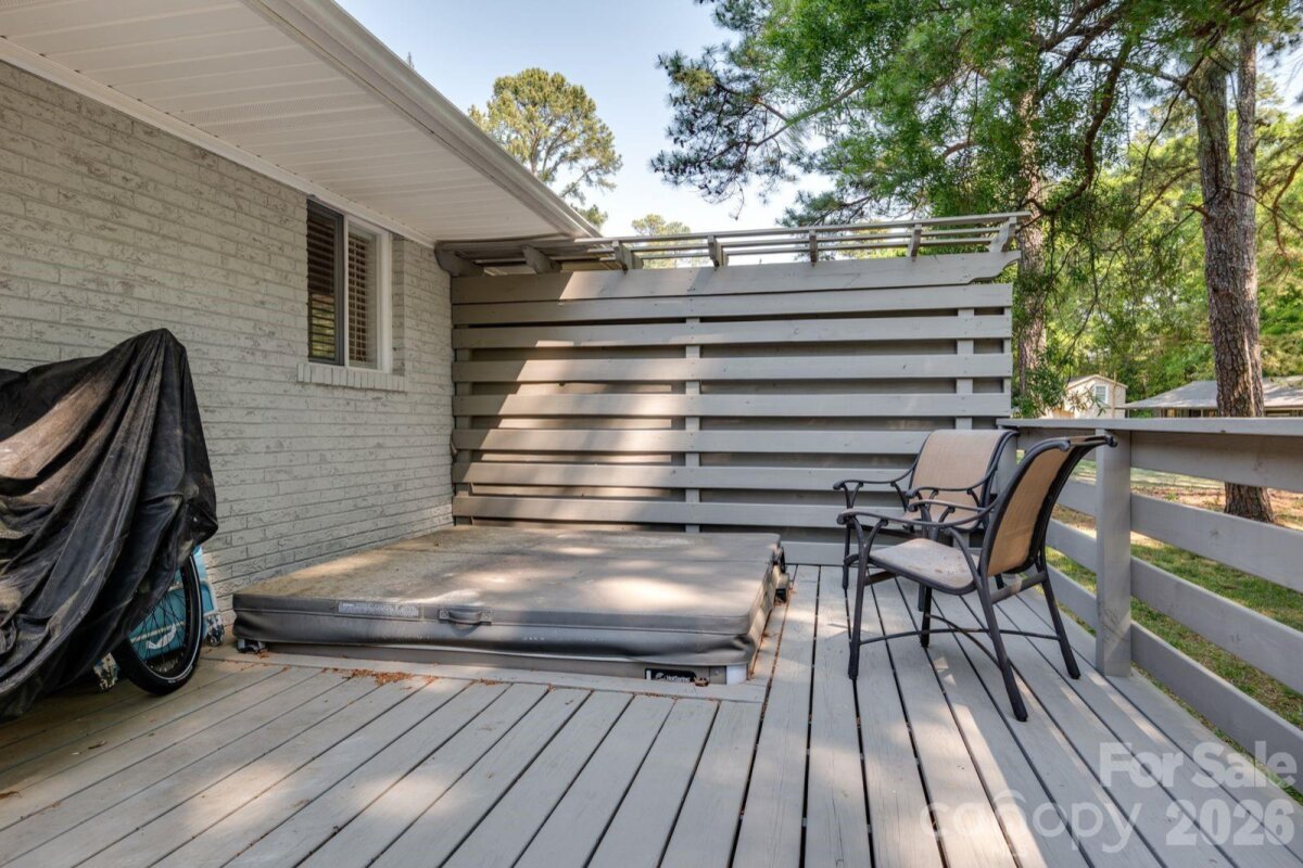 HEART OF DOWNTOWN PINEVILLE ! NO HOA ! What a RARE find/opportunity! Come see this completely remodeled in 2021 FULL brick ranch on a peaceful LARGE lot with mature trees on just under an acre Room to grow here! Sought after location! OPEN floor plan ,easy clean laminate floors throughout , neutral color scheme , stainless appliances and granite counter tops , custom built deck that accommodates the private hot tub which is included! 4 bedrooms, 2 full baths. Waling distance to famous historic Pineville ! Enjoy the local shops and restaurants and the new Library too! If outdoors is your preference you less than a mile from Pineville Lake Par & Dog Park! ! Enjoy the Greenway access Lake, Walking trails, playground, Shelter, and Free splash pads . A truly one of a kind home .