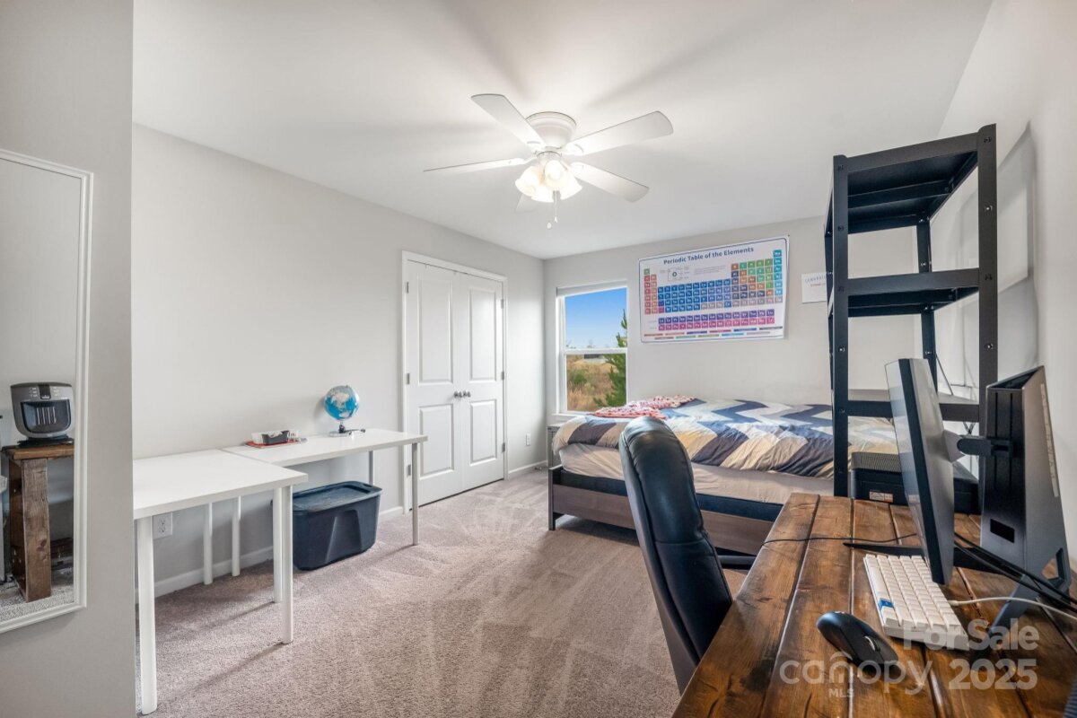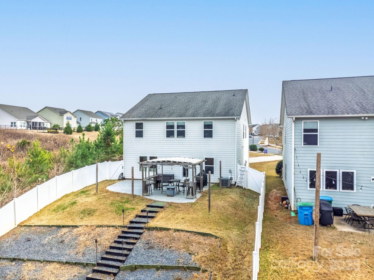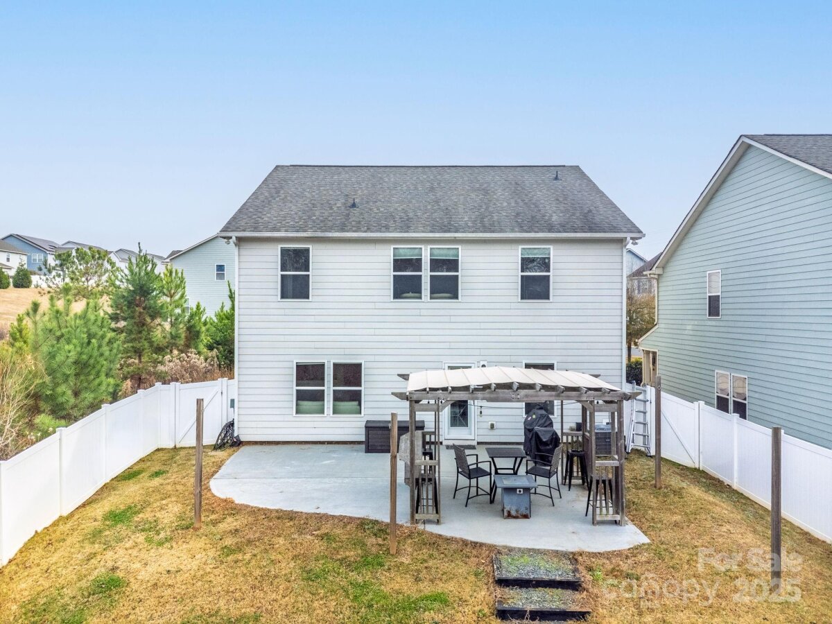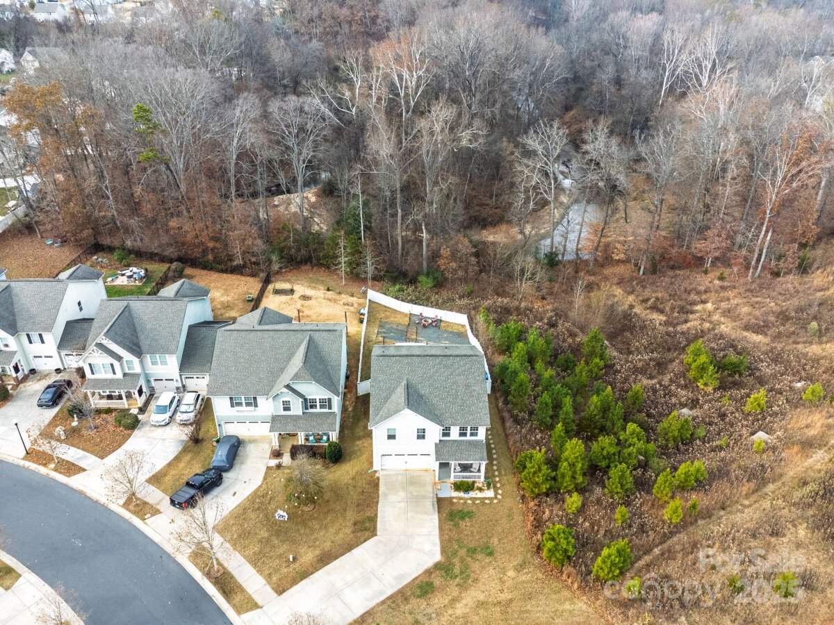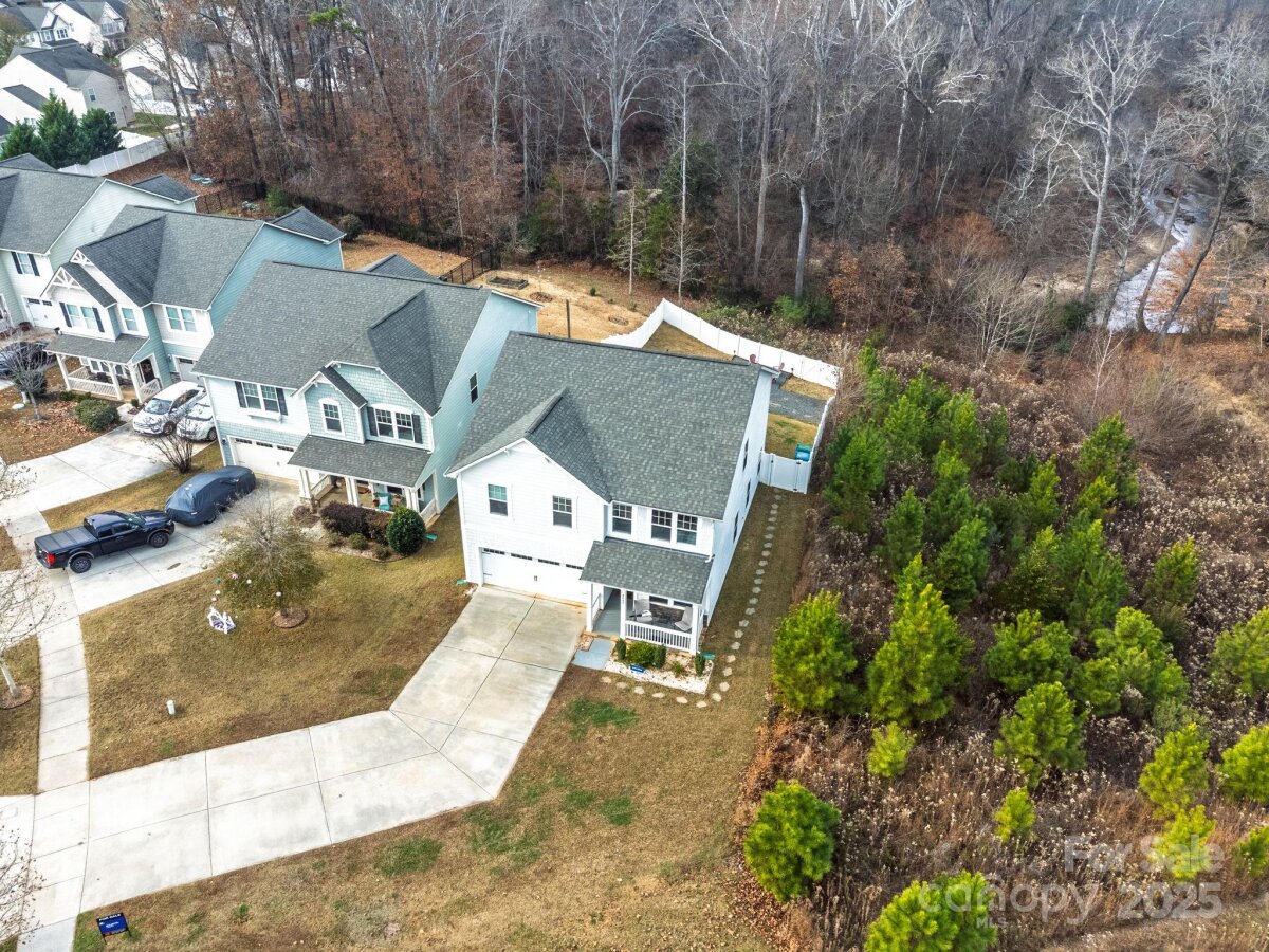 Is there a 4-bed single family home in Huntley Glen under $460K with a private lot? Yes, and it's now available in Pineville’s sought-after Huntley Glen community. Built in 2018, this 4-bedroom, 2.5-bathroom home spans 2,450 square feet and sits on a 0.22-acre private lot with a fenced yard and no rear neighbors, just protected city land for extra peace and privacy. Inside, you’ll love the oversized kitchen island, perfect for family meals or entertaining, and the bright, open floor plan that feels both functional and inviting. The oversized driveway offers convenient parking. Located minutes from Carolina Mall, shopping, and conveniences, and zoned for Ballantyne Ridge High School, this home offers both location and lifestyle. Whether you're a first-time buyer or a growing family, this home checks all the boxes. The backyard offers excellent privacy with white fencing and a wooded backdrop, as well as access to nearby greenway connections including the Carolina Thread Trail. A spacious patio and fire pit make this outdoor area ideal for entertaining. This is the first time this home has been offered for resale