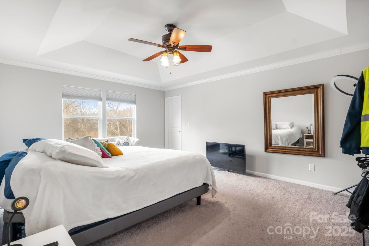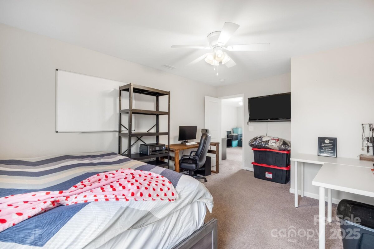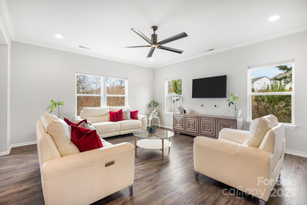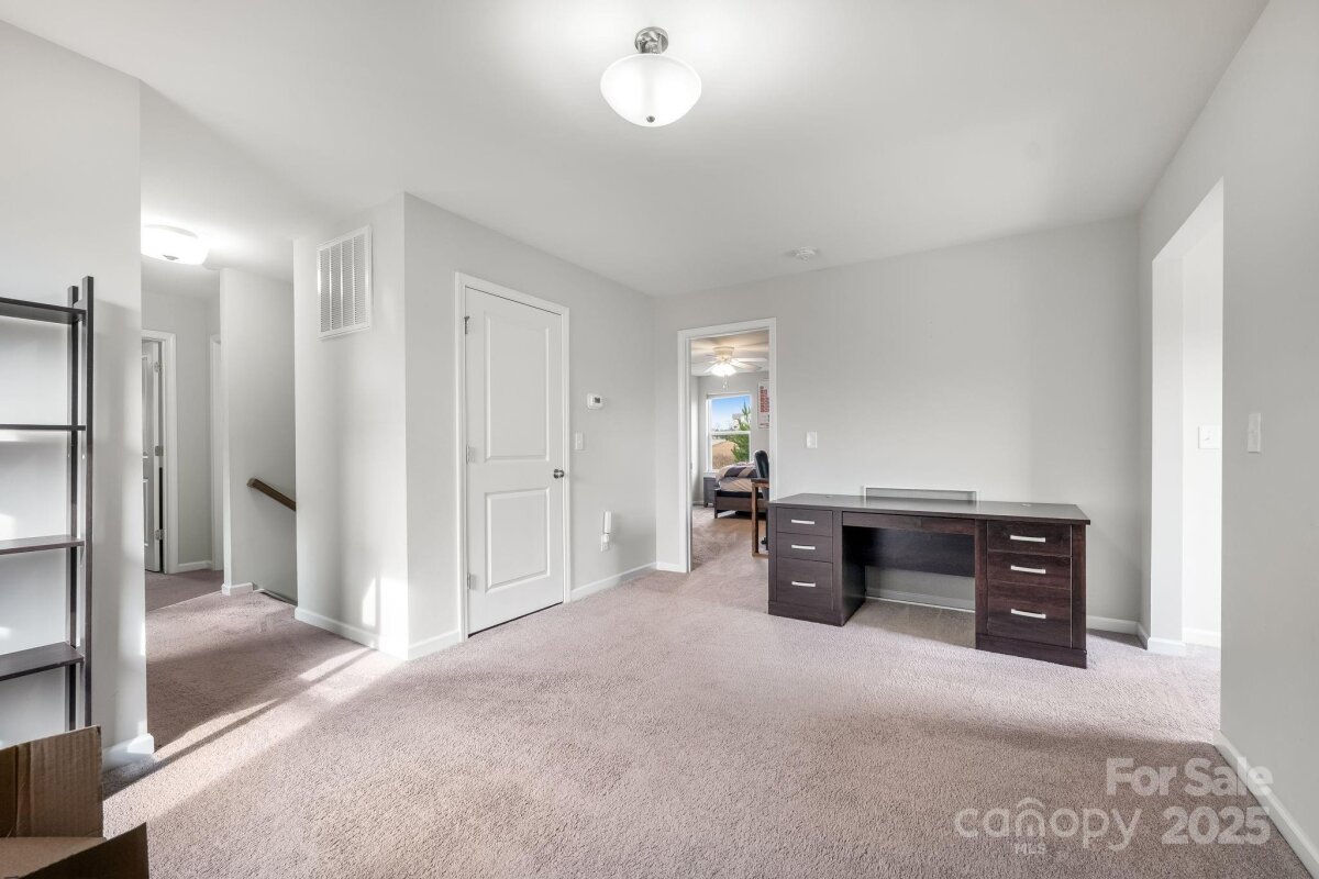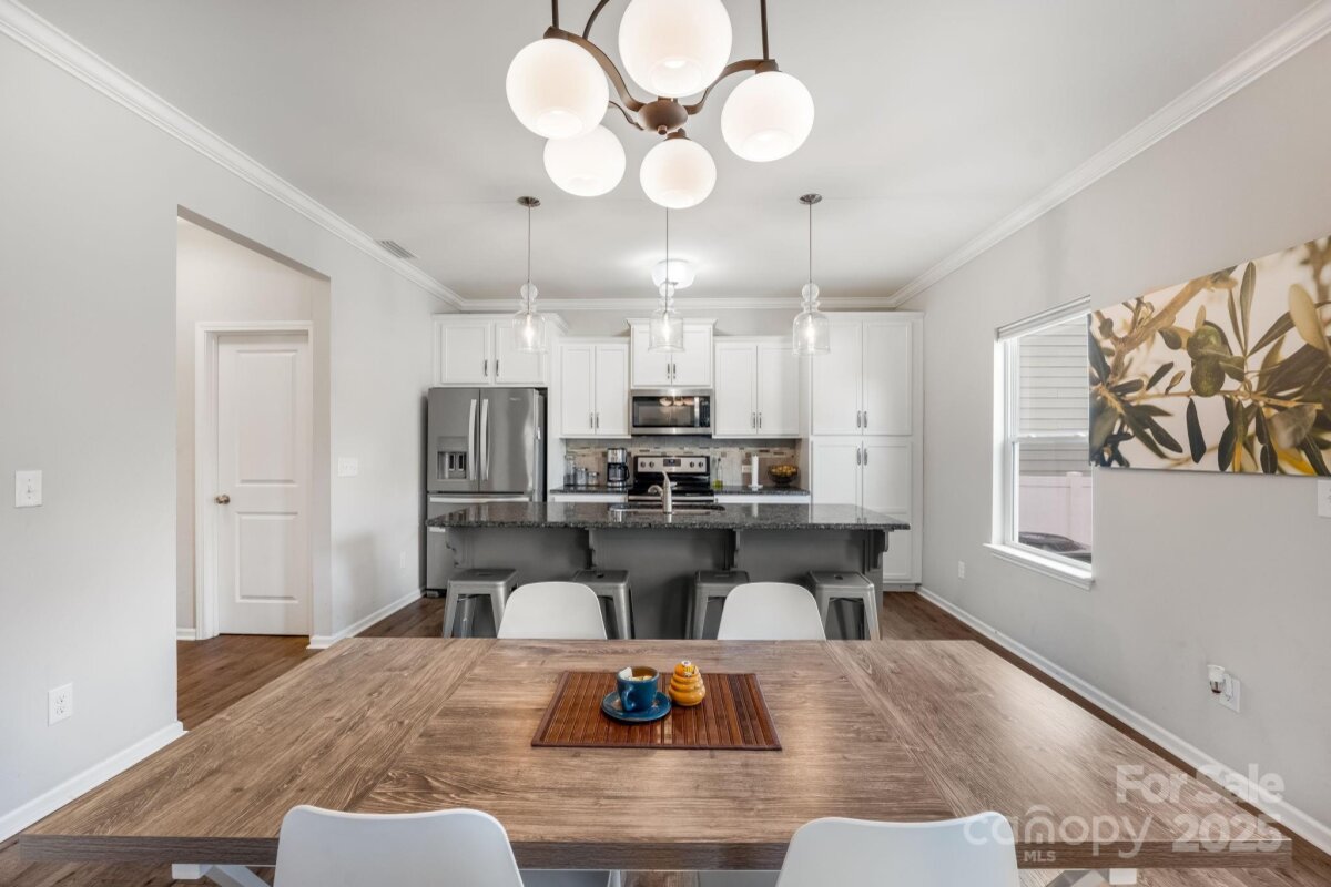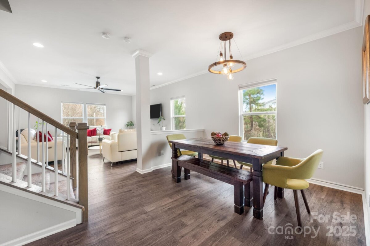 Is there a 4-bed single family home in Huntley Glen under $460K with a private lot? Yes, and it's now available in Pineville’s sought-after Huntley Glen community. Built in 2018, this 4-bedroom, 2.5-bathroom home spans 2,450 square feet and sits on a 0.22-acre private lot with a fenced yard and no rear neighbors, just protected city land for extra peace and privacy. Inside, you’ll love the oversized kitchen island, perfect for family meals or entertaining, and the bright, open floor plan that feels both functional and inviting. The oversized driveway offers convenient parking. Located minutes from Carolina Mall, shopping, and conveniences, and zoned for Ballantyne Ridge High School, this home offers both location and lifestyle. Whether you're a first-time buyer or a growing family, this home checks all the boxes. The backyard offers excellent privacy with white fencing and a wooded backdrop, as well as access to nearby greenway connections including the Carolina Thread Trail. A spacious patio and fire pit make this outdoor area ideal for entertaining. This is the first time this home has been offered for resale
