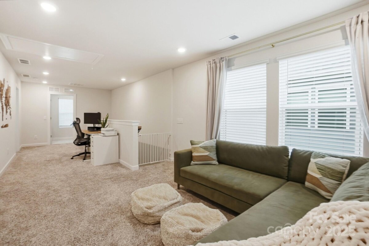Be a few minutes from I-485 and mere miles from all Charlotte has to offer! This charming Charleston style home has a welcoming open concept with a gleaming white kitchen (big island), built-ins, and a perfect living room perfect for gatherings! On the upper level is the primary suite, 2 bedrooms with a large shared bathroom, a laundry room, and a loft. This home has all the flexibility you could be looking for whether you need more space in Greater Charlotte, or relocating to the Carolinas! Don't miss the neighborhood amenities. Seller is providing a transferable home warranty through November of 2027.