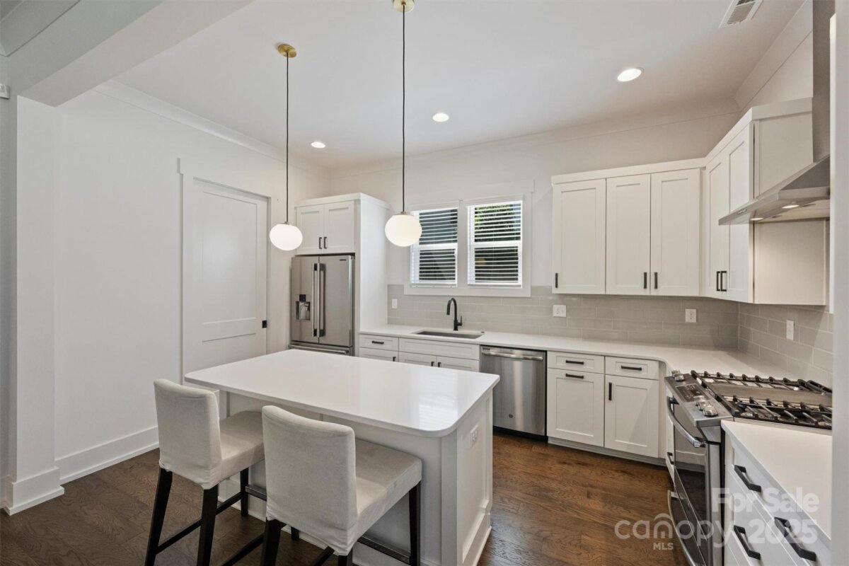 Welcome Home to 1014 Drummond Ave! Built in 2019, this home brings a contemporary farmhouse vibe right to the middle of all of the city's most vibrant urban hot spots! Beautifully maintained by one owner, 1014 offers an open floor plan on the main level with 10ft ceilings, and an elevated kitchen design complete with large center island, quartz counter tops, stainless appliances and large pantry. On the second floor you'll find two generously sized bedrooms and the primary suite which features a custom-designed walk-in closet. Endless possibilities wait for you on the third level, perfect for a bonus room, office, or additional living space. Enjoy entertaining on a cool Carolina evening in the comfort of your own backyard, with a privacy fence and no-maintenance turf. Right around the corner you can grab a coffee on your way over to Cordelia Park, explore Optimist Park, NODA, and all that Plaza Midwood has to offer! Move in ready and minutes from Uptown Charlotte, you can't miss this one!
