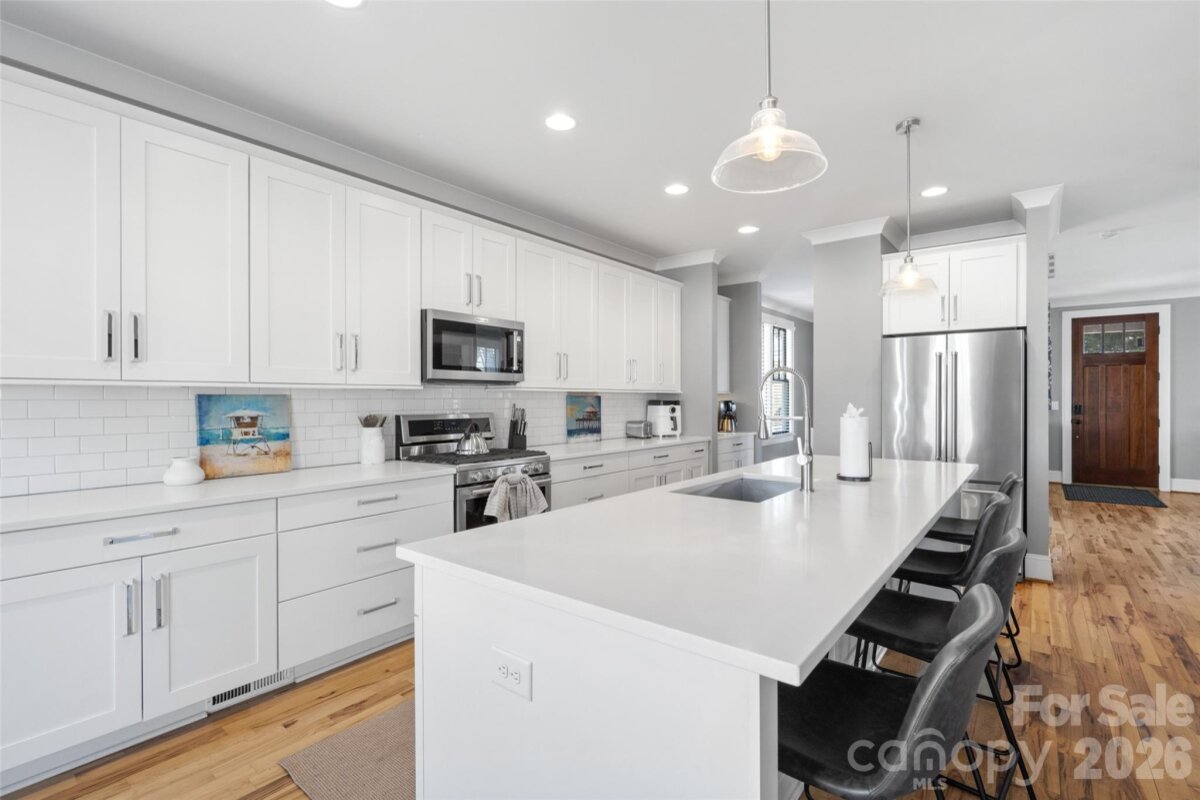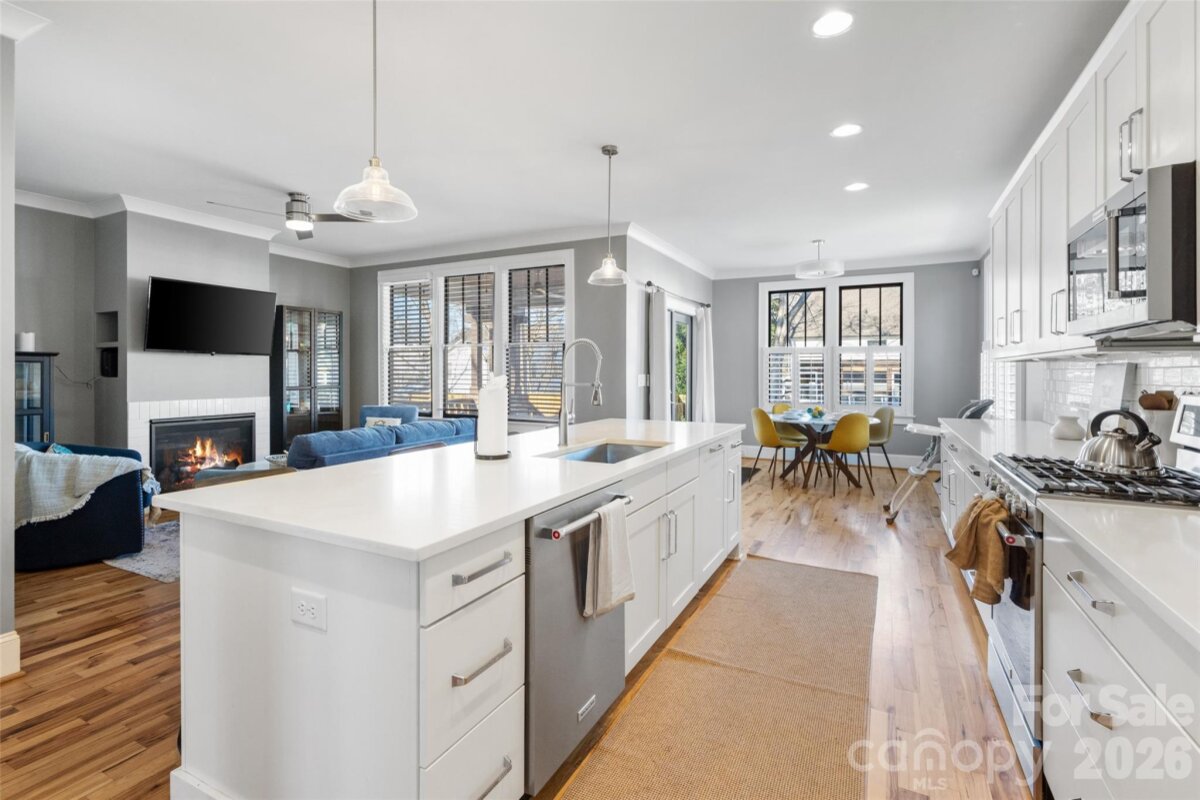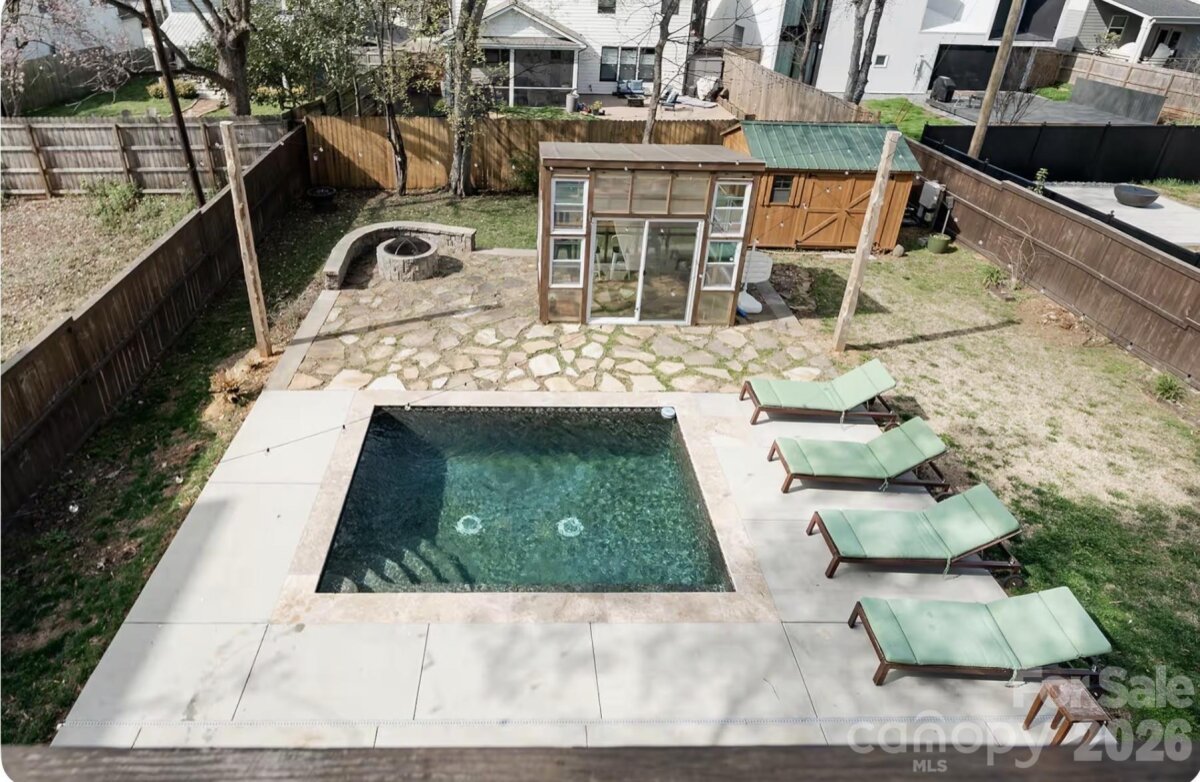 The most effortlessly cool home you’ll see on your search. Tucked at the end of a quiet, no-through street, this Belmont retreat offers rare privacy without sacrificing walkability—perfectly positioned between the creative energy of NoDa and the buzz of Plaza Midwood. Inside, a versatile floorplan with hardwoods throughout and multiple flex spaces creates simple, modern flow. The open kitchen anchors daily life with a massive quartz island, gas range, and generous space for gathering. Upstairs, the primary suite opens to a private balcony, perfect for morning coffee with city views. Outside is pure staycation: the covered porch extends living space, and the 10x14 heated saltwater pool converts to a spa at the touch of a button—plus a greenhouse-turned-outdoor bar adds a fun, unexpected twist. The flat, fully fenced front and back yards make it easy for kids and pets to roam safely. This home truly delivers location, thoughtful design, and personality. Surrounded by local restaurants, corner shops, and easy access to the Light Rail, Optimist Hall, Uptown dining and nightlife—it's Belmont living at its best.