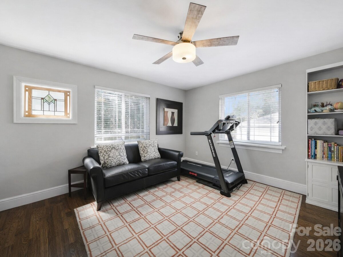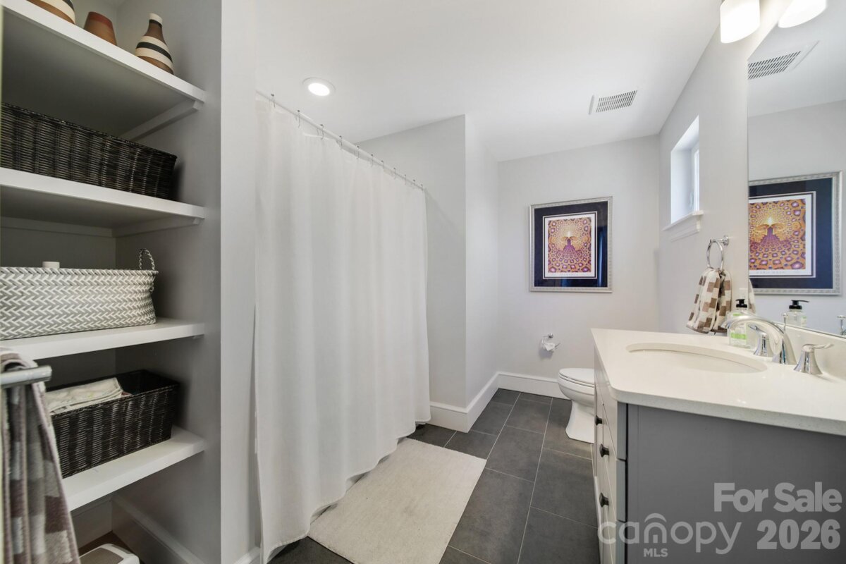 Charming Craftsman style home in a prime Charlotte location just minutes from Uptown and steps from Plaza Midwood. Covered front porch welcomes you inside a thoughtfully renovated interior that blends classic character with modern finishes. Real hardwood floors extend throughout the entire house, complemented by neutral tones, updated lighting, and whole home blinds. Gourmet kitchen has been beautifully updated with Shaker style cabinetry, subway tile backsplash, Bosch appliances, generous island with seating, and breakfast nook perfect for enjoying your morning coffee. Adjacent dining and living rooms offer an open floor plan layout for both everyday living and entertaining. Three bedrooms on the main level, along with a full and half bathroom, provide flexibility for guests, office space, or playroom. Upstairs, the primary suite offers a private retreat with tray ceiling, hardwood floors, dual sink vanity, soaking tub, oversized shower, and walk-in closet with built in shelving for enhanced storage. Additional bedroom with an en-suite bathroom, and spacious laundry room complete the upper level. Backyard features a fully fenced and usable outdoor space with an electric gate, paver patio, and two car detached garage. Ideally located near Veterans Park, offering a playground, tennis and pickleball courts, soccer and baseball fields, disc golf and splash pad. Just moments from popular dining, breweries, coffee shops, and grocery stores. Convenient access to I-74 and Interstates. This home delivers an exceptional balance of location and style.
