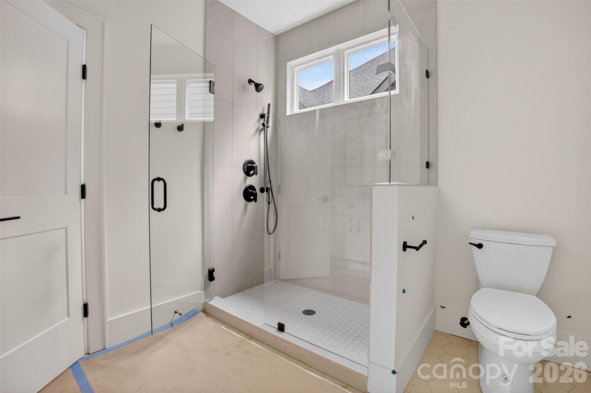 Stunning modern farmhouse in a fantastic location just off The Plaza. This home is thoughtfully designed with a combination of modern lines, warm wood finishes and satin brass accents. The heart of this open concept floor plan is a bright and very spacious great room and kitchen, which overlook the covered deck and deep back yard. The kitchen is a chef's dream, with stainless Jennair appliances, custom cabinetry, quartz countertops and walk-in pantry. The main level also includes a bedroom with a full bath, plus an office/flex room. Upstairs, you'll find the Primary bedroom with vaulted ceiling, a spa-inspired Primary bath with a large soaking tub and separate shower, plus two closets - one with washer/dryer hookups for added convenience. The upper floor also includes three additional bedrooms with ensuite baths and a loft area. Design details include high ceilings, 8' doors, and wide-plank European White Oak floors. This home is conveniently located where Villa Heights, NODA and Plaza Midwood meet. New construction on a tree-lined street, across from 55+ apartment community. Please use caution when touring the home and property, as it is an active construction site.