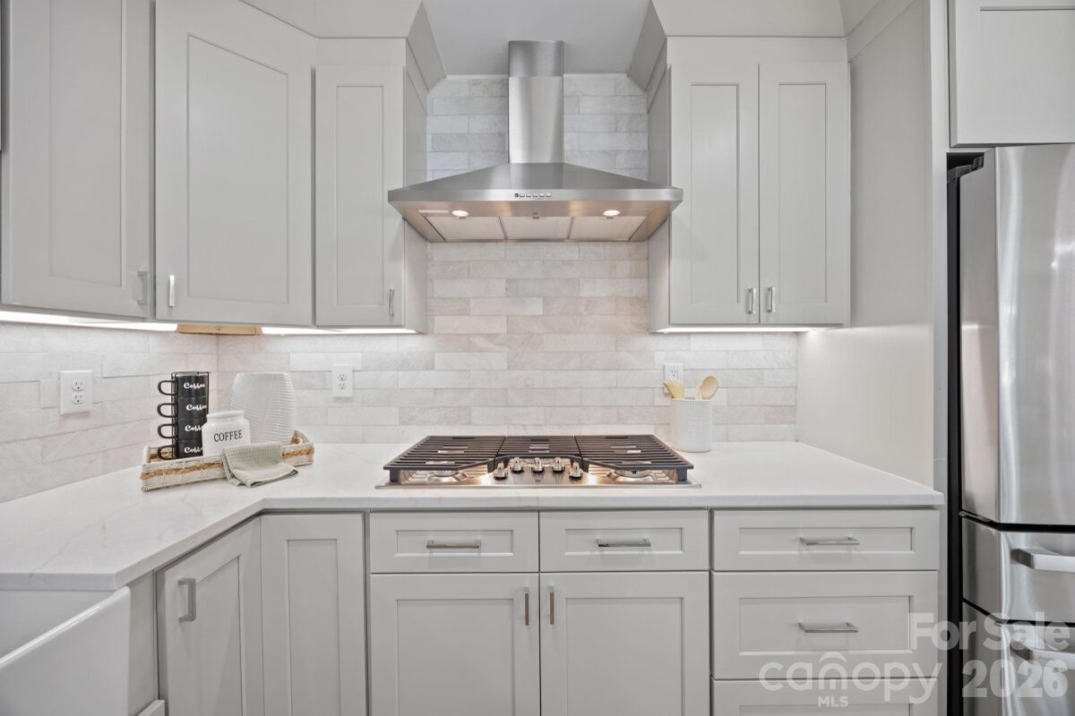 Fully remodeled and move-in ready, this charming bungalow—situated on a desirable corner lot—offers the perfect blend of style, functionality, and location. Featuring 3 bedrooms and 3 full baths, the thoughtfully updated interior includes a beautifully designed kitchen with a gas cooktop and built-in beverage fridge—ideal for both everyday living and entertaining. The layout is both practical and versatile, with two bedrooms featuring private ensuite bathrooms, while the third bedroom has its own full bath conveniently located just across the hall—perfect for guests or flexible living arrangements. Beautifully tiled bathrooms and consistent LVP flooring throughout the home create a cohesive, elevated feel. Additional highlights include a dedicated laundry room with a utility sink and custom built pantry storage, adding everyday convenience, along with a great deck for outdoor relaxing or entertaining. The property also offers three off-street parking spaces. Located in a prime Charlotte location, you’re walkable to Optimist Hall and just a quick bike ride to Plaza Midwood and NoDa—offering easy access to some of the city’s best dining, shopping, and entertainment. A true turnkey opportunity in one of Charlotte’s most vibrant areas!
