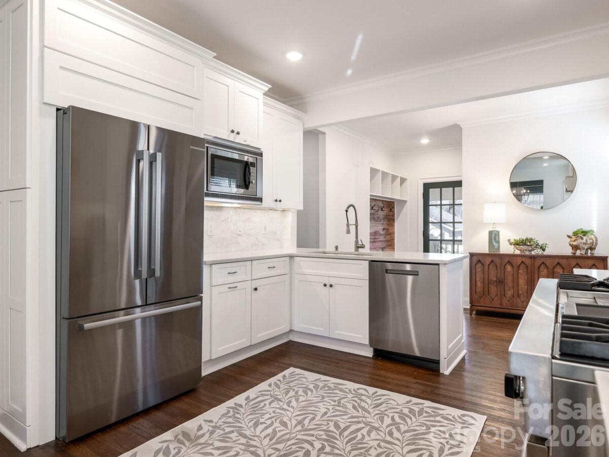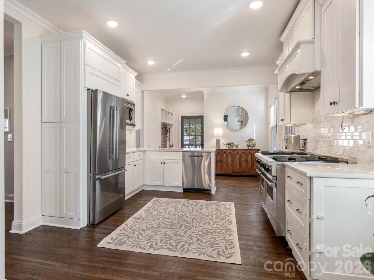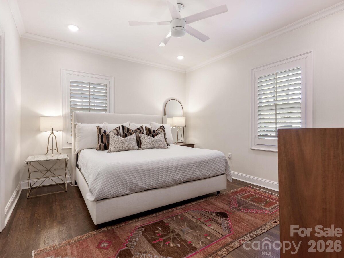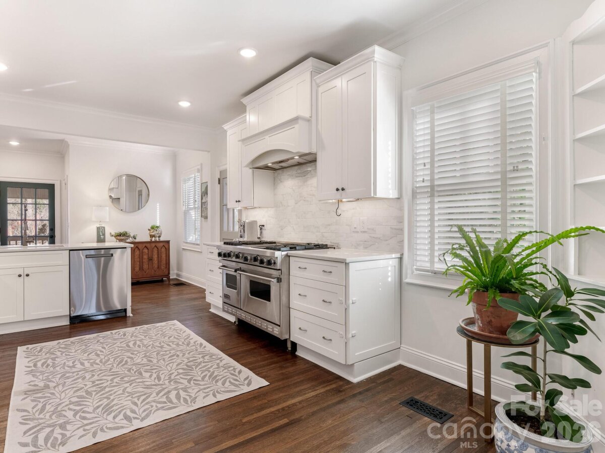 Welcome to 2409 Belvedere, a classic Plaza Midwood bungalow offering thoughtful updates, preserved original details, and an exceptional location. From the covered front porch, enter into the color-drenched living room featuring large windows, a fireplace, original hardwood floors, and tall ceilings found throughout the main level. The beautifully appointed kitchen showcases white cabinetry, quartz countertops, and stainless steel appliances, including a Viking 48" gas range. The main-level primary suite features a serene en-suite bath with timeless, neutral finishes that thoughtfully mirror the kitchen selections. A second main-level bedroom offers flexibility as a guest room or home office. Upstairs, you’ll find an additional bedroom, full bath, and versatile flex space. The finished basement provides excellent bonus space for a home gym or secondary living area and includes a full bath. Outside, enjoy a professionally landscaped yard with a bluestone patio, natural area with raised garden beds, and a turf play area. The detached two-car garage is a true standout, featuring epoxy floors, built-in cabinetry, a beverage fridge, and a heater—creating an ideal space for year-round entertaining. Located a short distance from Midwood Park and all the shops and restaurants Plaza Midwood has to offer, this home delivers the perfect blend of charm, convenience, and lifestyle.