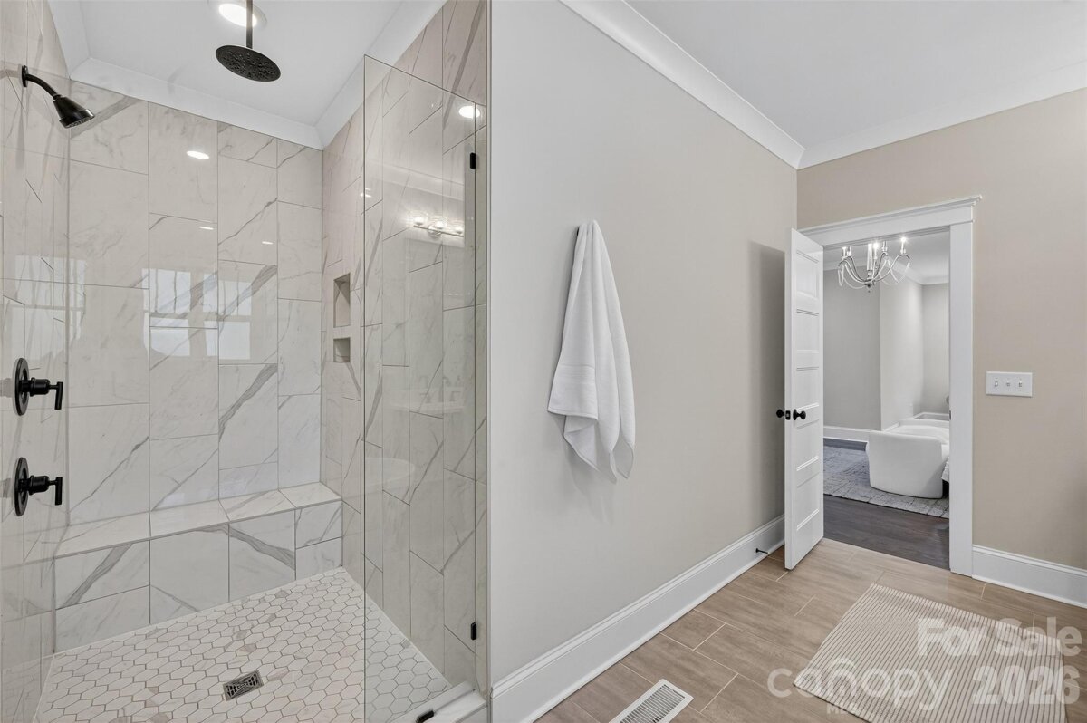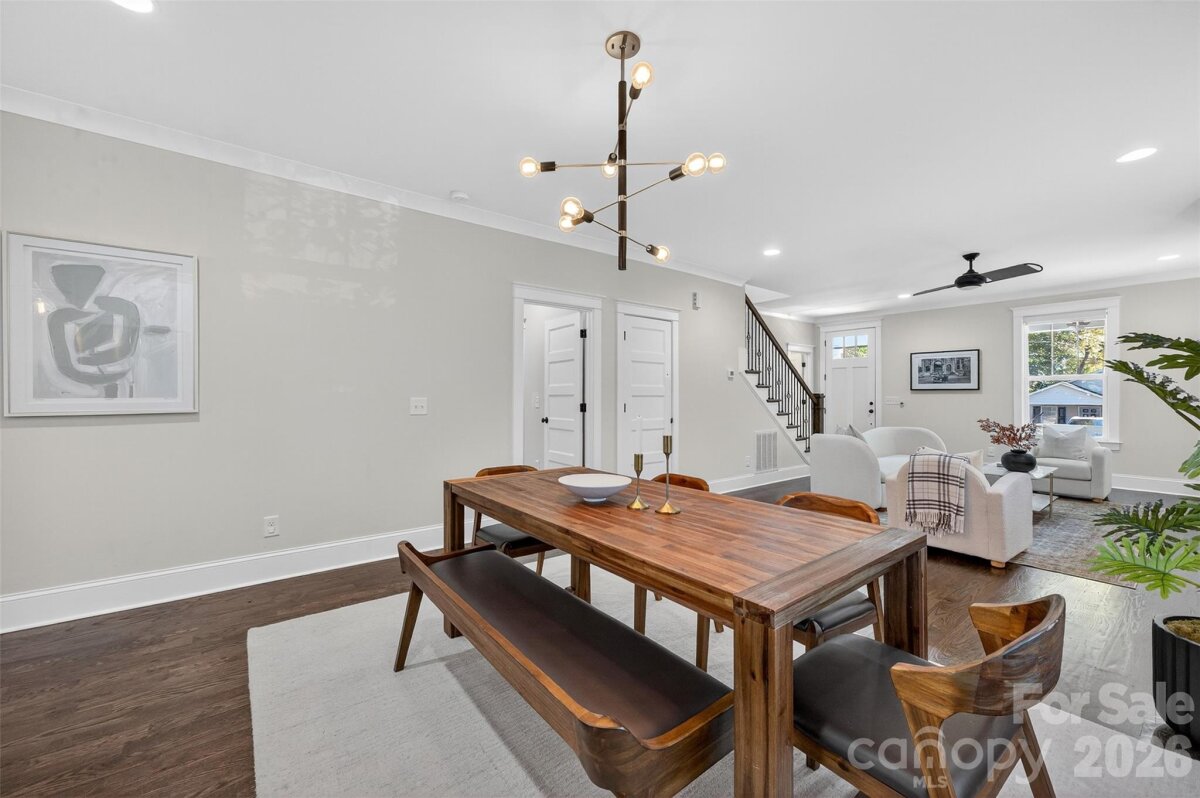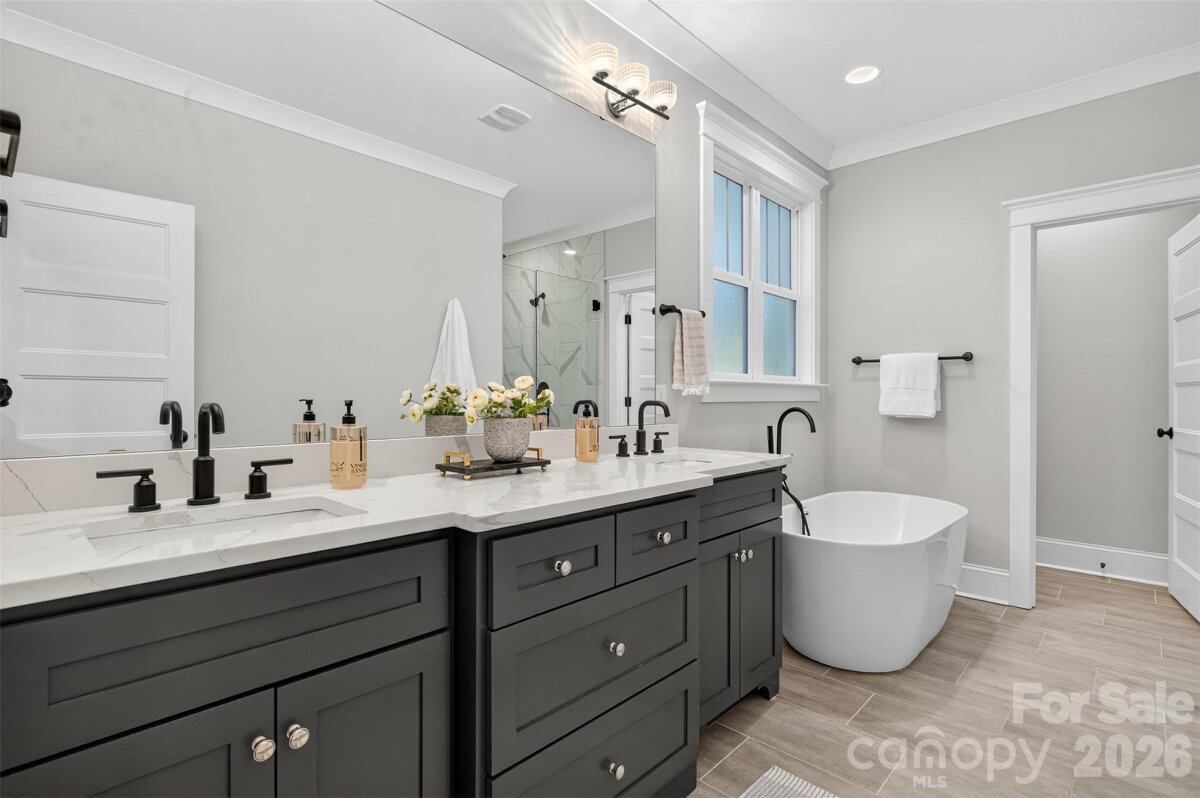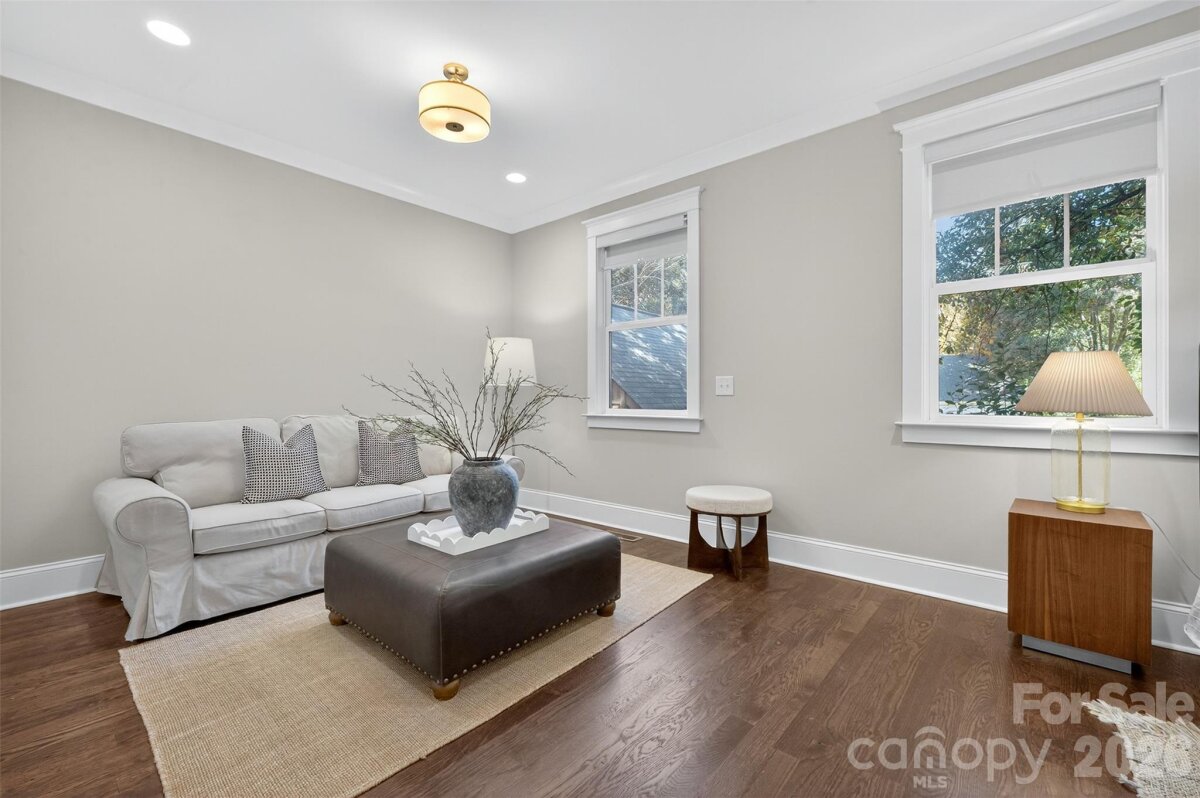 Stunning 2020 custom Craftsman in the heart of Midwood, just steps from NoDa and Central Ave! This home perfectly blends modern comfort and design, featuring an open floor plan ideal for entertaining. The gorgeous kitchen offers a large island, handcrafted cabinetry, quartz countertops, gas range with hood, stainless steel appliances, and overlooks the light-filled living room with a beautiful gas fireplace. The primary suite is conveniently located on the main level, complete with a spacious sitting area, spa-like bath featuring a freestanding tub, frameless glass shower with dual shower heads, double vanity, and custom walk-in closet. A main-level laundry room with drop zone adds everyday convenience. Upstairs, you’ll find a bright loft area perfect for an office or lounge, three generous bedrooms, a full bath, and an additional laundry room. Additional highlights include site-finished hardwoods throughout, dual HVAC, on-demand hot water, sealed crawl space, large fenced backyard, and an attached two-car garage with circular front drive. The perfect home in the perfect location—truly one of a kind!