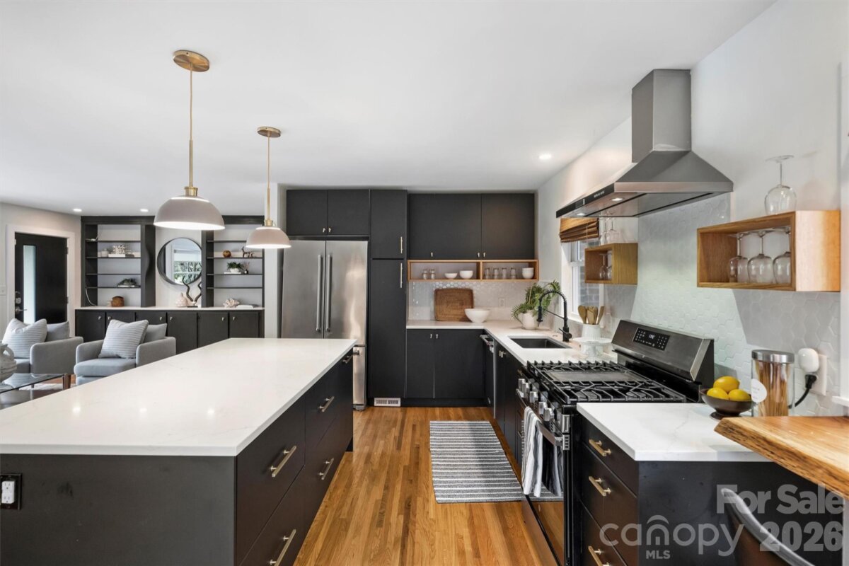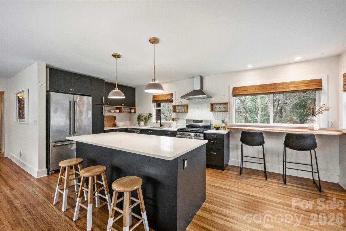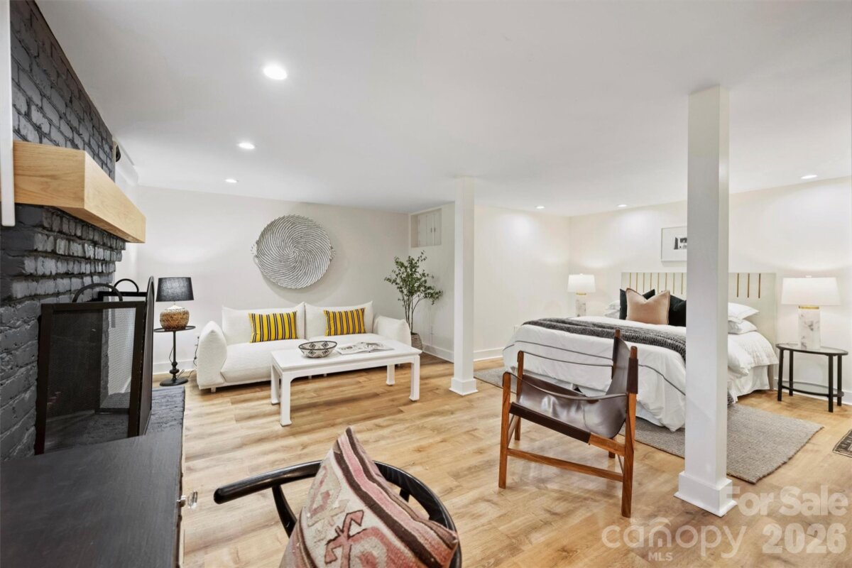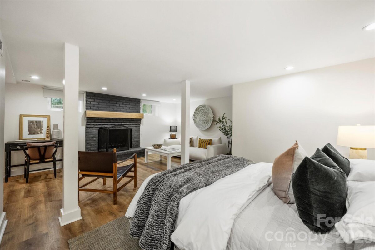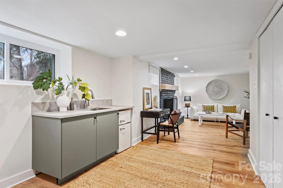 Swanky Renovated Mid-Century Modern Brick Ranch In The Heart Of Country Club Heights! Just Steps From Shamrock Park, Shamrock Gardens Elementary, And Charlotte Country Club, It Truly Doesn’t Get Better In Terms Of Location In The Plaza Area! This Stylish Home Features A Gorgeous Modern Kitchen With A Large Island And Top-Of-The-Line Appliances. The Main Level Offers Three Bedrooms And A Beautifully Renovated Full Bathroom, Accented With Wallpaper And Thoughtfully Curated Finishes. The Fully Finished Lower Level Adds Incredible Flexibility And Can Easily Function As An Airbnb, In-Law Suite, Studio Apartment, Or Additional Living Space. It Includes An Open Living Area With A Fireplace, A Kitchenette With Sink, Mini-Fridge, Plus An Area Perfect For An Office, Bedroom, Gym, Or Creative Studio. The Options Are Truly Endless. The Attached Garage Offers Extra Storage, Workshop Potential, Or Space For A Small Car. The Backyard Is Immaculate And Serene, Featuring A Raised Gravel, Stone, And Wood Patio Ideal For Entertaining Or Relaxing. Enjoy Unbeatable Walkability To Plaza Midwood And NoDa Favorites: Summit Coffee, Humbug, Pure Pizza, And More, While Being Minutes From Uptown. This One Is Truly Special!