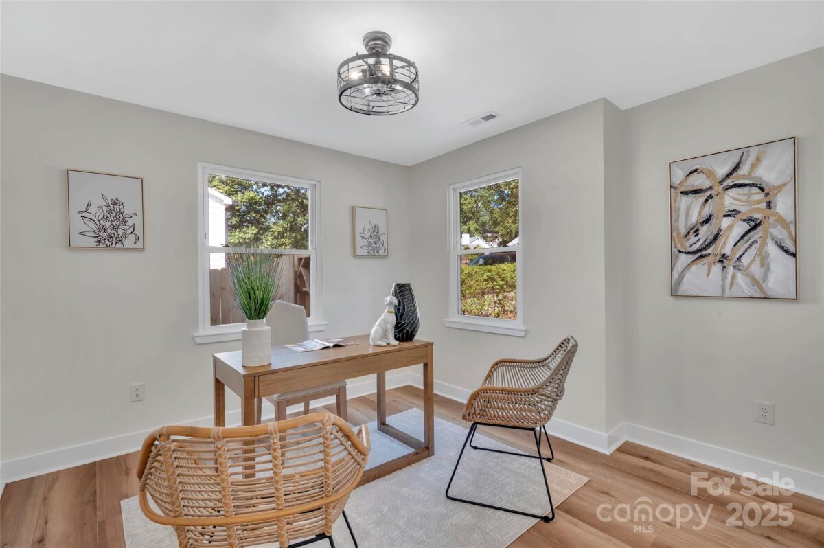 Luxury & thoughtful design make this beauty a perfect retreat in the sought after Plaza/Shamrock area of Charlotte. A spacious living room w/ elegant 10ft high ceilings & a sleek fireplace to ground the space welcome you. This open concept features a gorgeous gourmet kitchen w/ extended hood range, grand island w/ bi-lateral storage, stainless steel appliances, new soft-close cabinetry, & quartz counters throughout. Attention to detail has been made at every corner to offer modern amenities w/ charm, comfort & luxury to include your primary ensuite bath spa retreat w/ a soaking tub w/fireplace feature, and fully tiled wet spaces with massage shower jets & double rainfall shower heads. An ultimate relaxation experience! Designer lighting & flooring fill this 4 bed 2.5 bath oasis in the heart of Charlotte. The large, fully fenced backyard w/all new deck is a perfect bonus to this gem. Better experienced than explained... Welcome home!
