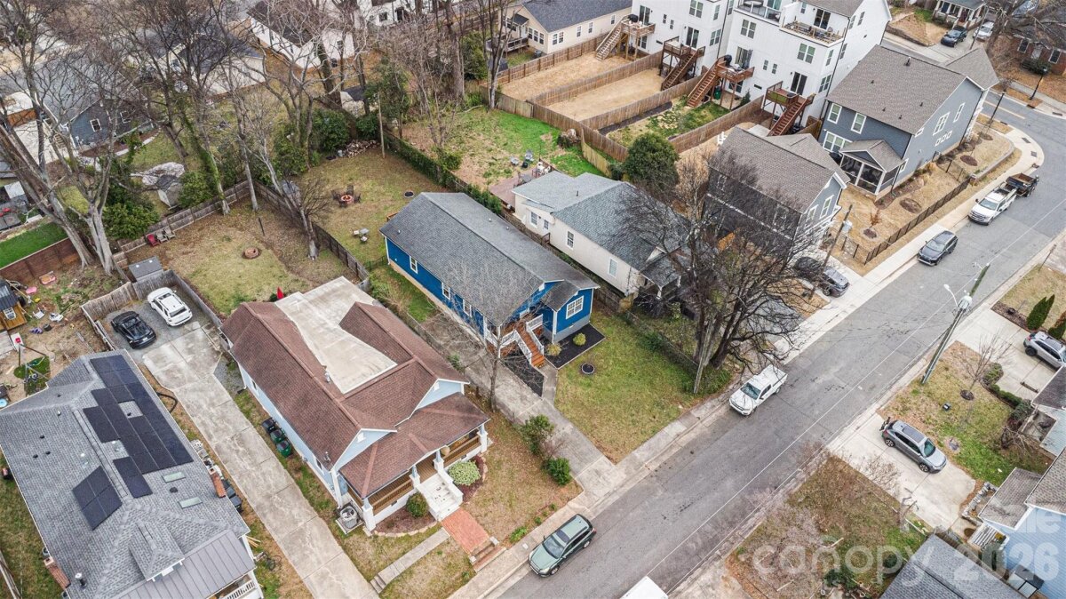 This charming bungalow in historic Belmont neighborhood offers an unbeatable location - walk to the light rail, local restaurants, and just minutes from Uptown Charlotte and vibrant neighborhoods like Plaza Midwood and NoDa. Inside, the open floor plan features 4 bedrooms and a beautifully updated white kitchen with butcher block countertops, stainless steel appliances, a large farmhouse sink, island seating, and gorgeous tiled floors. The kitchen flows seamlessly into the family room, creating the perfect space for everyday living and entertaining. Fresh paint throughout the home adds a bright, move-in-ready feel. A spacious rear laundry room offers flexibility for a home office or cozy sitting area. The private backyard with partial fencing is ideal for relaxing or entertaining, and the recently added shed provides extra storage. Durable vinyl plank flooring runs throughout the home. Major updates include a newer roof (2020), HVAC (2024), and a revamped crawl space with an industrial-grade dehumidifier for added peace of mind. No HOA, offering flexibility for short-term rentals. The front porch and family room window in the front offer amazing night time skyline views of Uptown Charlotte! Enjoy easy access to the Little Sugar Creek Greenway, and stroll to favorites like Rosie's Coffee and Wine Garden, Birdsong Brewing Co, the beautiful McGill Rose Garden, and hotspots such as Optimist Hall, neighborhood restaurants and coffee shops. Move-in ready and perfectly located, this home is ready to welcome its next owners!