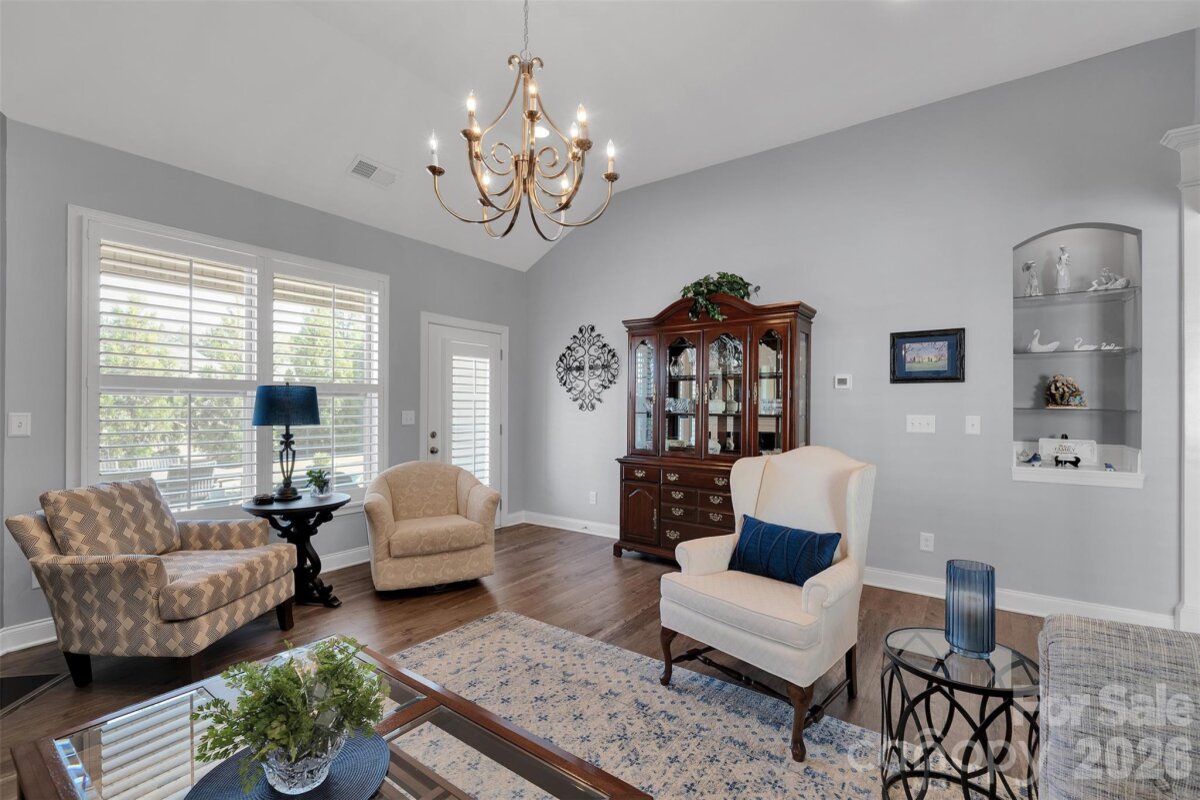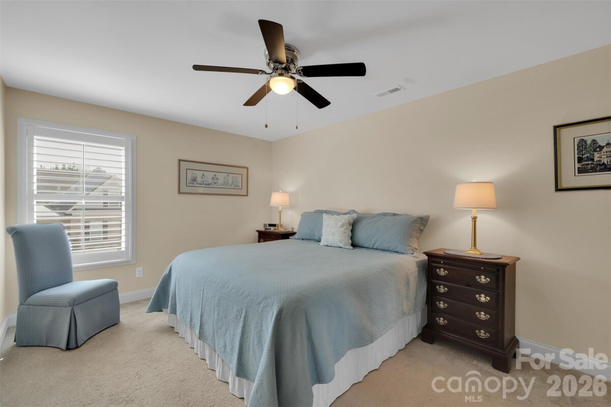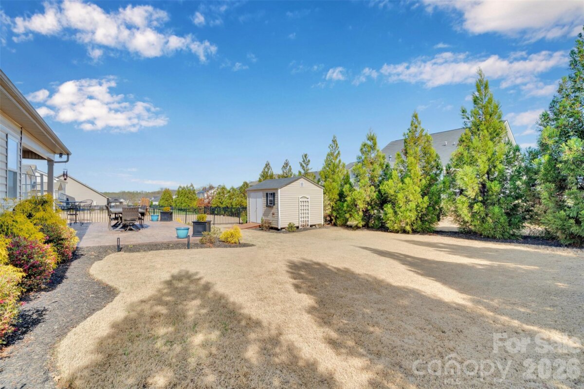 Beautifully maintained 4-bedroom, 3 full bath home featuring a highly desirable primary suite on the main level and a spacious open floor plan designed for comfortable everyday living and entertaining. The kitchen is the heart of the home with granite countertops, 42-inch cabinetry, and abundant cabinet and storage space, seamlessly flowing into the inviting living area highlighted by a gas fireplace. Elegant plantation shutters throughout add timeless style and natural light control. Upstairs offers 2 additional bedrooms and a large loft, perfect for a media room, home office, or flexible living space. Step outside to a thoughtfully designed backyard retreat featuring a stamped concrete patio, professional landscaping, low-voltage landscape lighting, and drip plus full irrigation systems to keep the yard looking its best year-round. A utility shed provides additional storage, while the insulated garage adds efficiency and convenience. Residents also enjoy access to a community pool, providing a great place to relax and connect with neighbors. Ideally located with close proximity to Lake Wylie, as well as nearby shopping, dining, and medical facilities, this home offers the perfect blend of comfort, convenience, and lifestyle.