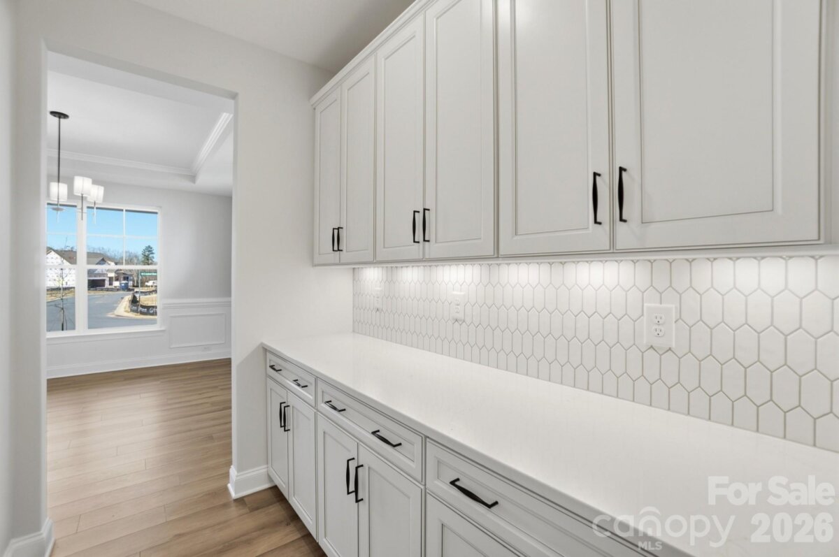 REFRIGERATOR INCLUDED! This 3-story Davidson plan has 5 bedrooms, 4 full baths, and more than 3,400 square feet of living space. The main level features a large kitchen with a butler pantry leading to the dining room with tray ceiling and beautiful wainscoting. The designer kitchen has white cabinets with a contrasting grey island, quartz counters, geometric tile backsplash, stainless range hood, and stainless appliances, including a gas cooktop and a wall oven. The main floor also includes a guest bedroom and a guest bath with a tiled shower with bench seat. The upstairs primary suite is a true retreat with a large bedroom, sitting room with French doors, a closet with pass-thru to the laundry room, and a luxury bath. The primary bathroom features a tub with tile surround, shower with semi-frameless door, and double-bowl vanity. The upper floor also includes two additional bedrooms, a loft, and a full bath. The third floor has a spacious bedroom with an ensuite bath. Other exciting features in this home include beadboard drop zone, a direct-vent gas fireplace with marble surround, quartz countertops in all baths, a single-basin kitchen sink & more! Step outside and enjoy the covered rear deck or paver patio with a firepit and seating wall in the tree-lined backyard. Visit today!
