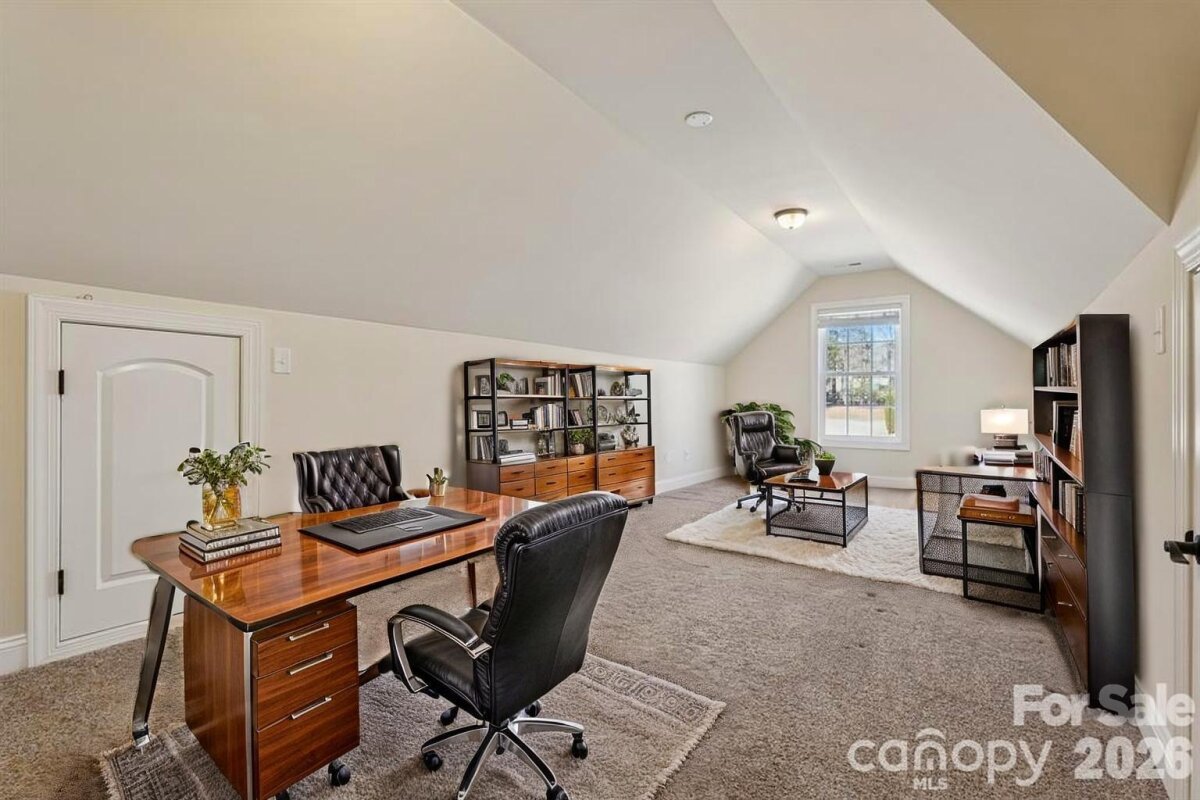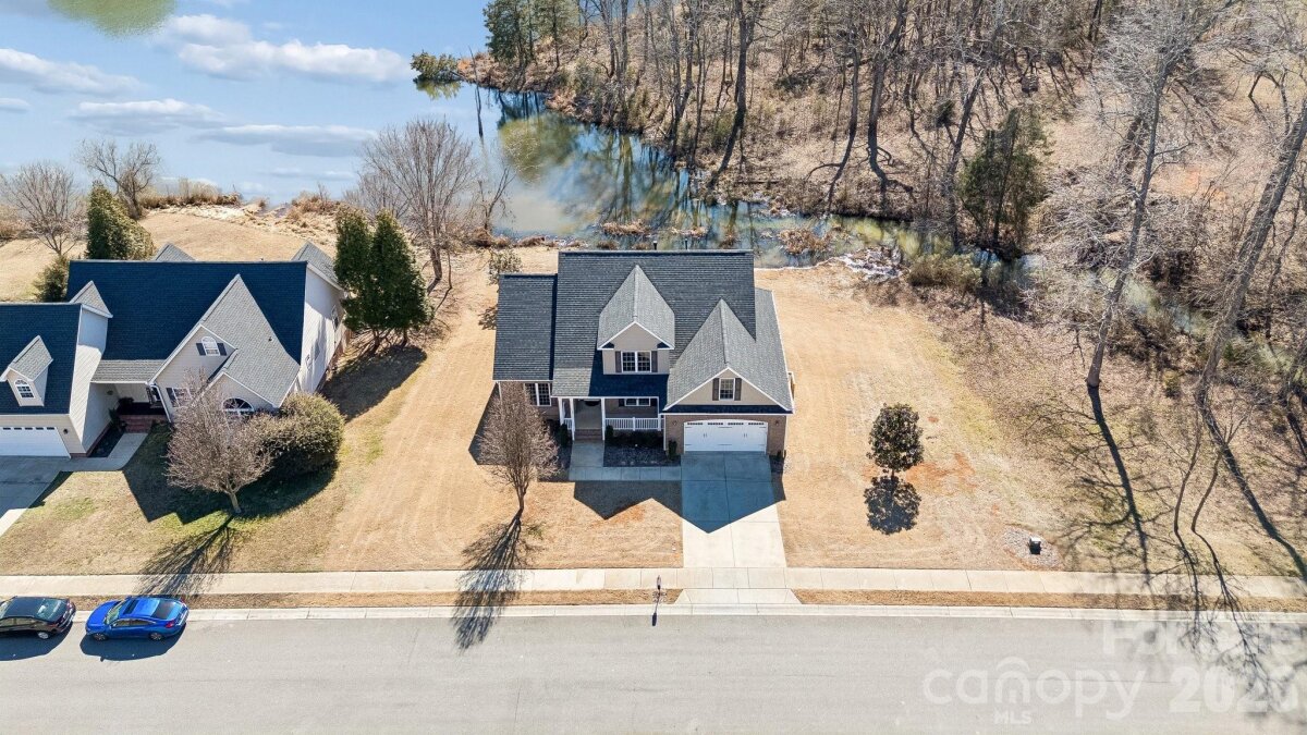Lakeview semi-custom home by builder Andrew Alosi with lake access to a peaceful, motor-free lake ideal for kayaking and canoeing. Enjoy fish, ducks, turtles, and a private backyard next to HOA common area. Single-owner home with primary suite on main level, 3 bedrooms plus bonus room. Features include 3-inch oak flooring, coffered great room ceiling, wainscoting in office and dining room, granite countertops in kitchen and baths, stainless steel appliances, custom stone fireplace with fossil accents, and screened/covered porch with storage. Spacious primary suite with vaulted ceiling and large bath. New 40-year hail-resistant roof (June 2024). Oversized garage with epoxy floor and keypad entry. South-facing windows include UV film and double-tilt design. Crawlspace with dehumidifier and moisture barrier. Front porch with fan, storm doors with optional screens, extra outlets, and exterior rear spigot. Close Proximity to York Preparatory Academy only 1.4 miles away!
