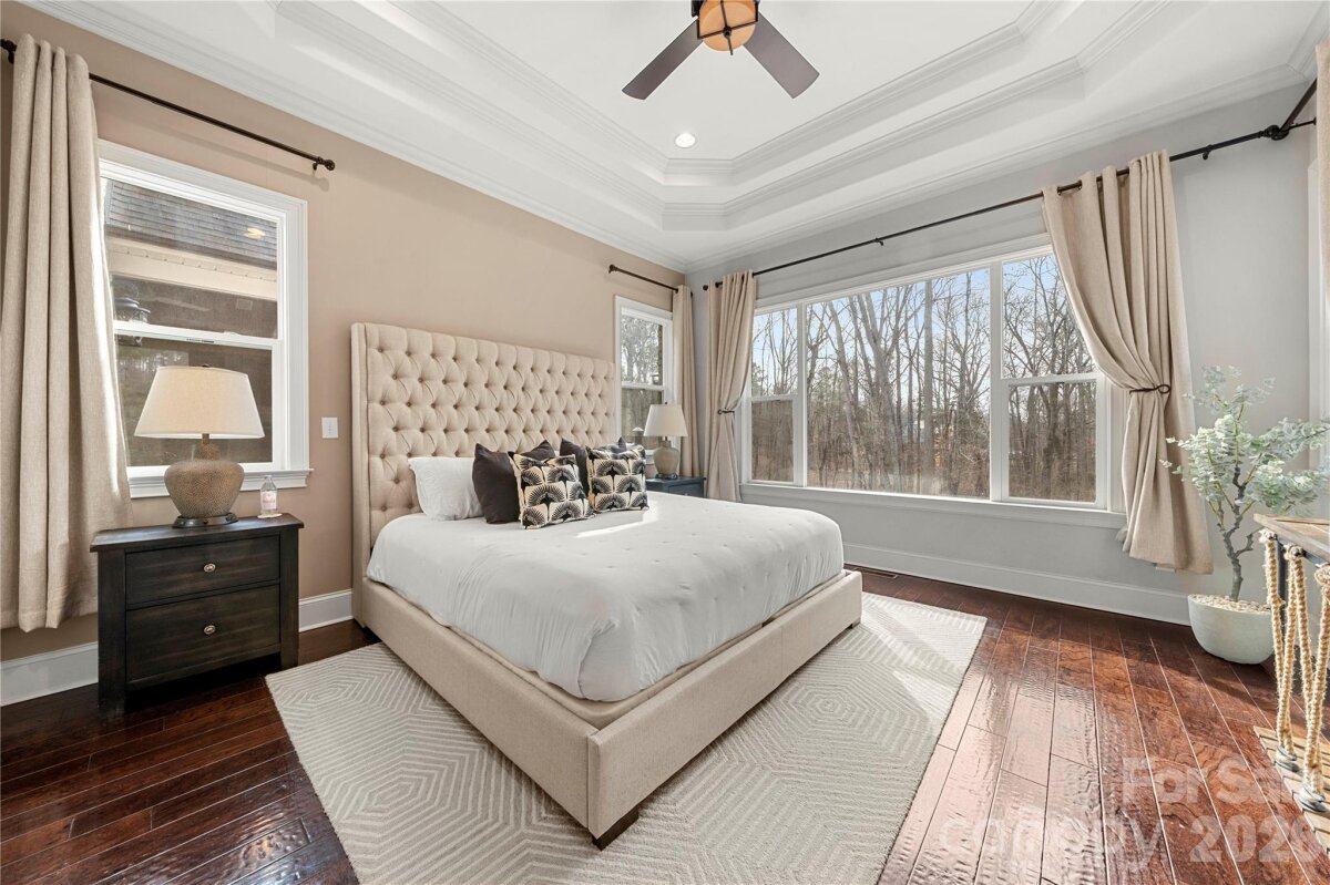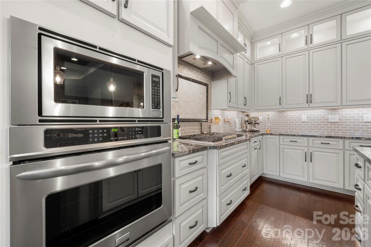Beautifully crafted country-style home with manicured landscaping and a deep rocking-chair front porch that welcomes you in. This custom-built residence is filled with thoughtful details, including coffered ceilings in the great room and a stunning stone fireplace that anchors the space. The gourmet kitchen features glass-front custom cabinetry with interior lighting, a granite-topped island, classic subway-tile backsplash, and a gas cooktop perfect for everyday cooking or entertaining. The main-level primary suite offers a true spa-like retreat with a frameless walk-in shower cave and multiple shower heads. Also on the main floor is an office and two additional bedrooms connected by a Jack-and-Jill bath, providing flexibility for family or guests. Upstairs, you’ll find a bonus room and an additional bedroom ideal for guests, hobbies, or a media space. Step outside to an entertainer’s paradise with incredible outdoor living areas, including a two-tier deck and a screened porch with all-season doors that open directly to the great room, creating seamless indoor-outdoor flow for gatherings and backyard barbecues. This exceptional home blends custom design, comfort, and timeless charm in a setting made for relaxing and entertaining.