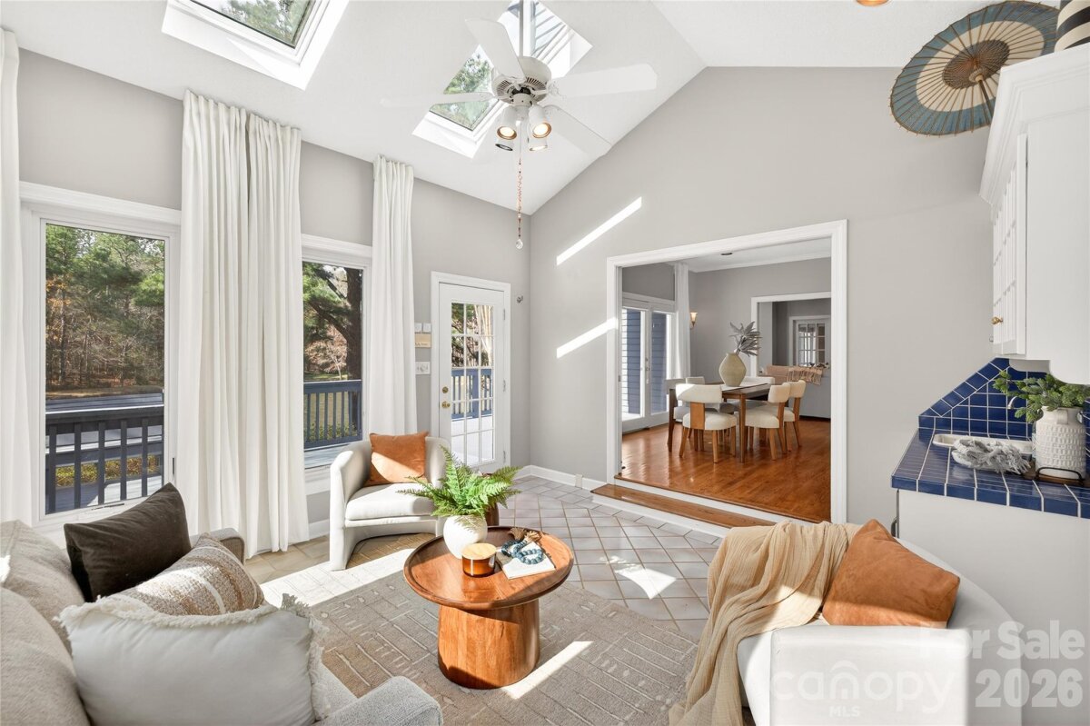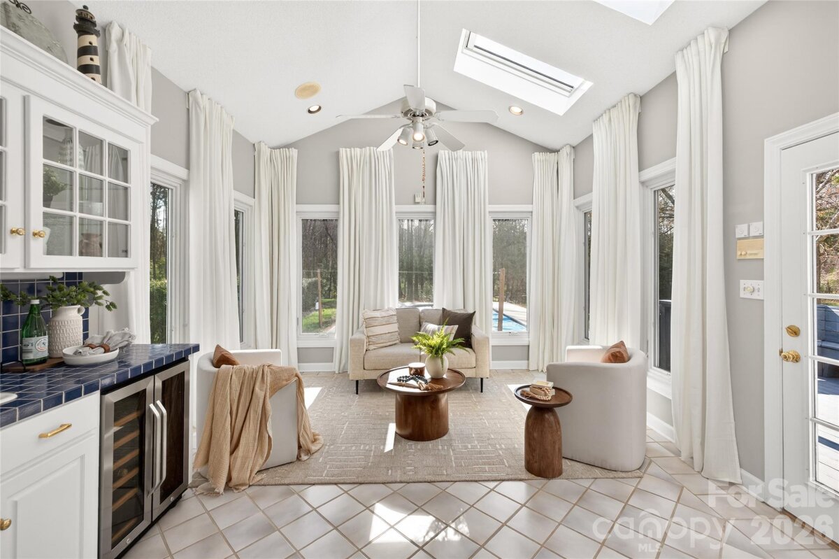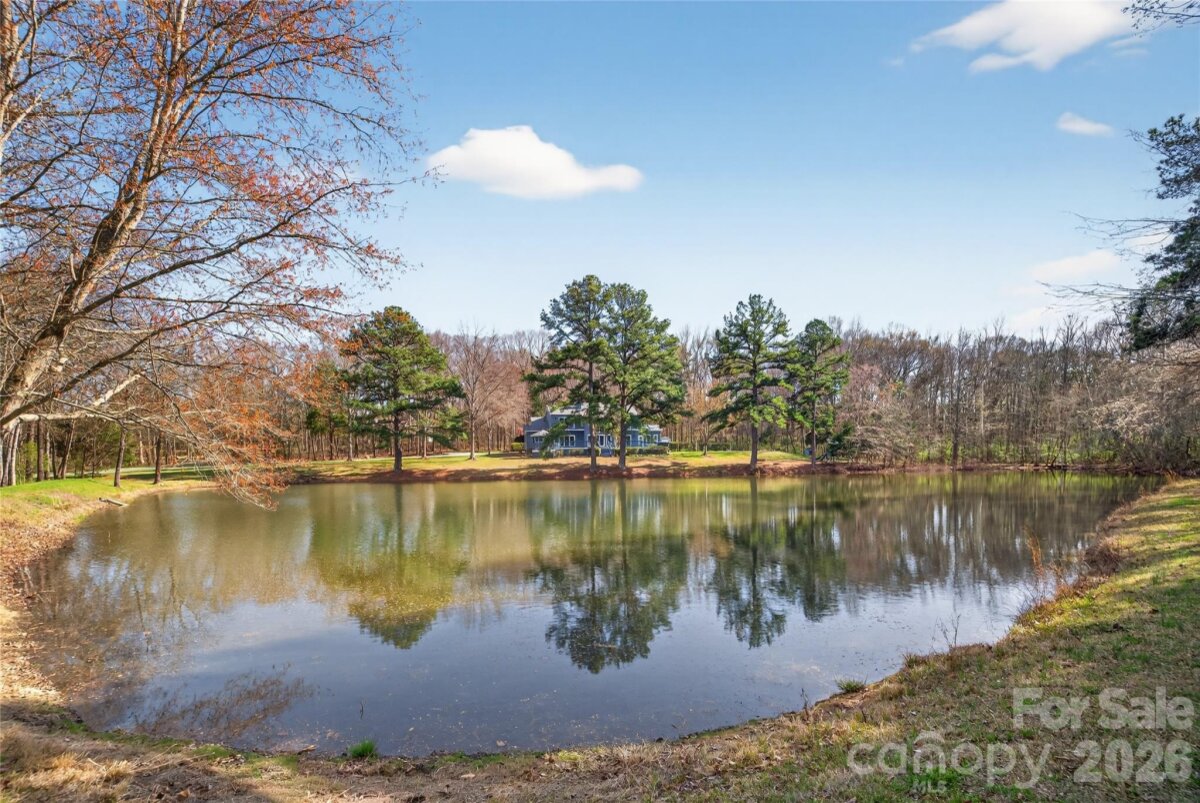 Rare opportunity to own a custom home on nearly 7 acres with no HOA just minutes from Charlotte. Properties with this kind of acreage, privacy, and natural views are becoming harder to find, especially this close to the city. Built in the early 1990s and designed by a well-known local female architect, the home was planned to take advantage of the land, natural light, and surrounding views. With approximately 3,780 square feet, the layout offers generous spaces and a design that feels very different from typical subdivision homes. The main living area features a two-story living room with large windows that bring in natural light and connect the interior with the surrounding landscape. The home includes 3 bedrooms, 2 full bathrooms, and 2 half bathrooms, offering both open gathering spaces and comfortable private areas. The primary suite is oversized and includes its own fireplace, a large bathroom, and separate his-and-her closets. Just off the main living area, the sunroom overlooks the pool and backyard, creating a quiet place to sit and enjoy the view of the property. A standout feature is the private office with its own exterior entrance and separate half bathroom, making it ideal for running a business from home, meeting clients privately, or creating a dedicated workspace. Several important updates have already been completed, including new roof (2024), HVAC (2021), new windows, new gutters with gutter guards, and a new deck (2025). The home also offers an oversized garage and a large driveway with plenty of space for parking. Outside, the property opens up to nearly 7 acres of land with an in-ground pool, a new deck for outdoor gatherings, and a stocked pond where turtles, blue herons, and otters are often seen. The setting offers a level of quiet and privacy that is increasingly difficult to find this close to Charlotte. Homes offering this much land, privacy, and character in this location rarely come on the market. You really have to see it in person to appreciate the space, setting, and potential this property offers.