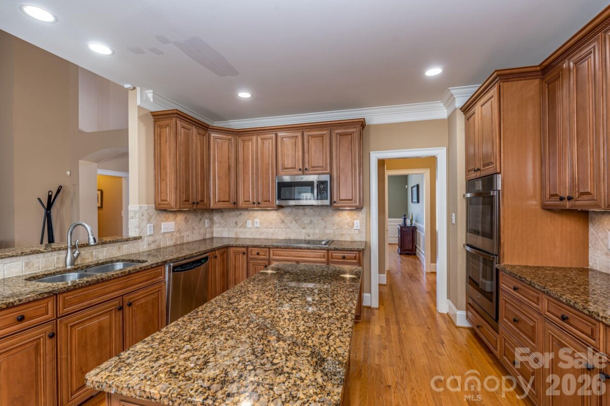 Your list is going to be checked off quickly when you see this custom-built, one-owner beauty that has room for everyone! The two-story foyer, with a double tray ceiling, provides a grand entrance. The main level, with hardwood floors and gorgeous woodwork trim, features the primary suite with spacious bedroom and en suite bath, including shower, tub, and double vanities. A two-story family room provides the perfect entertaining space and is open to the kitchen that features granite countertops, an abundance of cabinet space, as well as a breakfast area. The dining room increases your potential for larger gatherings, providing a wonderful atmosphere. A flex space on the main level can serve as an office, music room, or additional living space. Upstairs offers multiple living spaces with three additional bedrooms, two bathrooms, and a fifth bedroom that could serve as a bonus room! Take the party outside to the private back yard with deck and patio where you can host those special events. The attached double garage will be a welcomed addition with room for your vehicles and additional storage. Enjoy the community pool that is close by and start practicing your swing as you make this golf course neighborhood your next home!