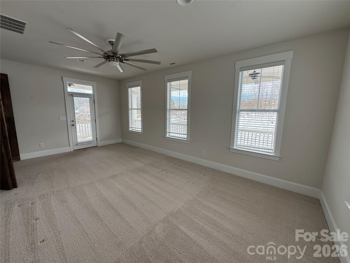 Welcome to this Charleston open floor plan designed by Evans Coghill Homes. You will immediately see the attention to detail and craftsmanship. Hardwood floors throughout the main floor living area. Wainscoting accents the large dining room and a barn door opens to a main floor study. The kitchen, with granite countertops and a large island for entertaining, opens onto the living room with a gas log fireplace. Large windows throughout brighten the home. Window treatments include both plantation shutters and blinds. Covered back porch. Spacious primary bedroom on the main floor with walk in closet, large primary bath and ceramic tile shower. Breezeway to a 2 car garage with a wall of custom built shelving. Grilling area is piped for natural gas. Upstairs 3 bedrooms and 2 full baths. French doors open from the bonus room to the wrap around, covered balcony where you can sit back, relax and take in the view of a vast green space. The back yard is level and fenced.