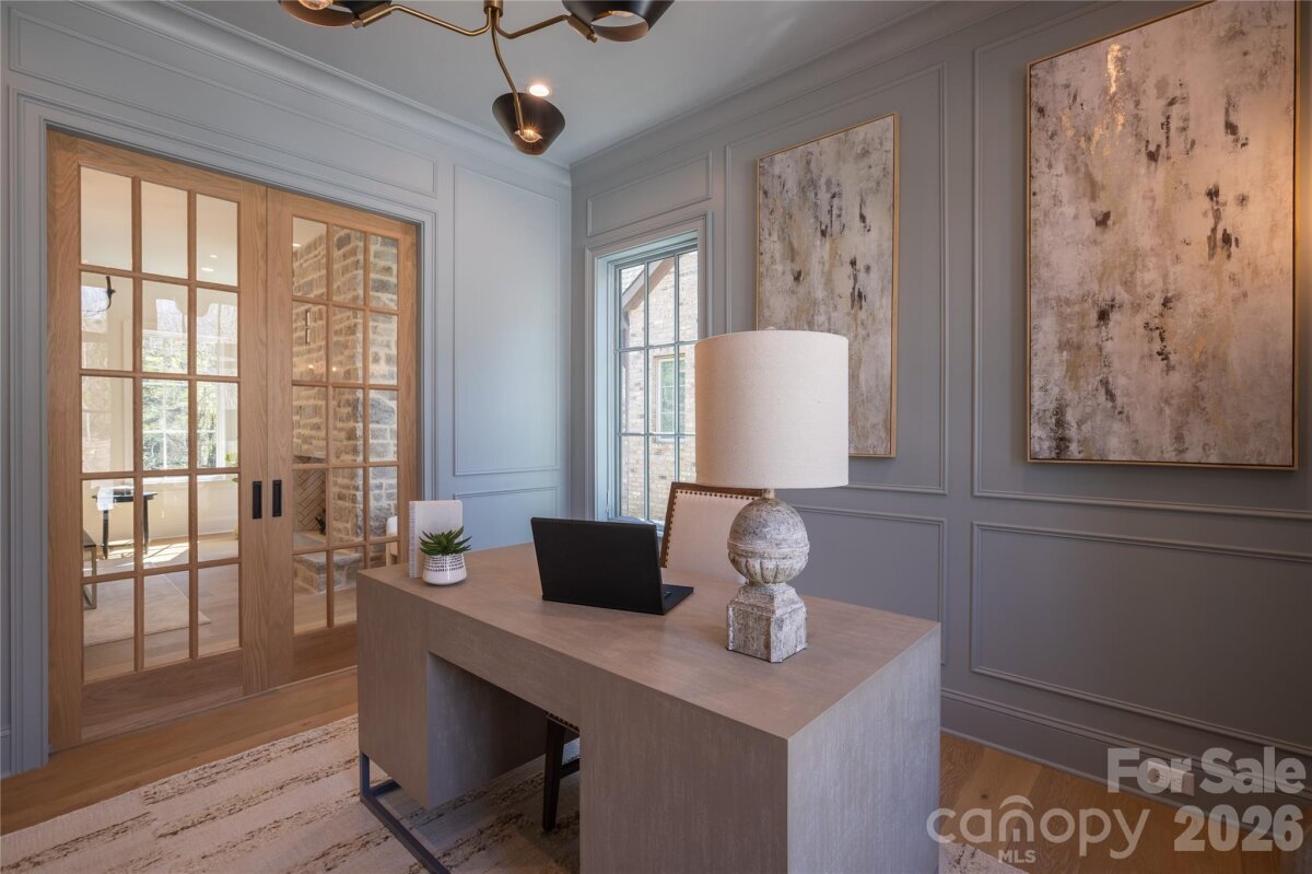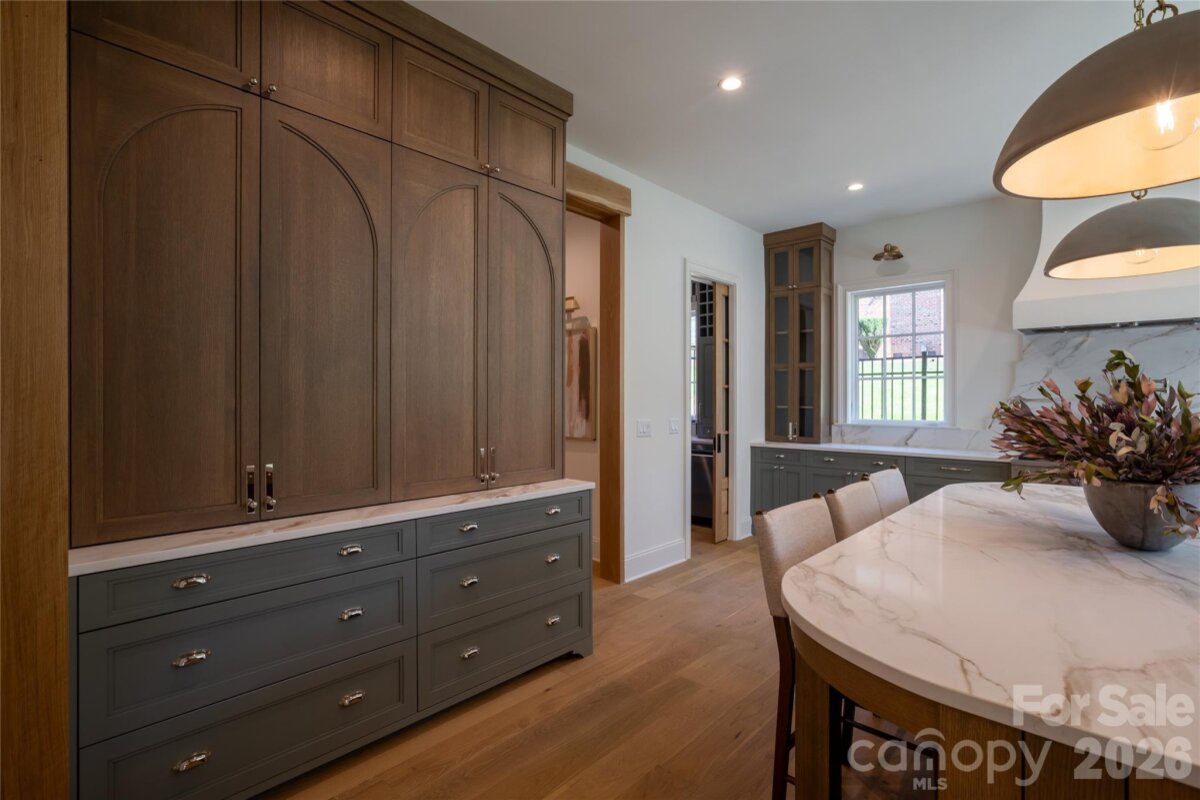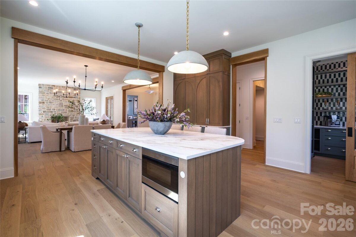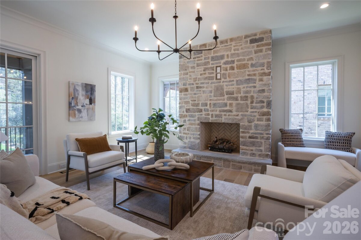 Discover 1007 Dacavin Drive—meticulously crafted new construction where timeless architecture meets exceptional interior detail in the heart of South Charlotte’s coveted Chambery neighborhood. Construction is now complete and home is back on market due to buyer’s contingent sale falling through. This 6-bedroom, 5.5-bath home offers over 4,300 square feet of refined living space. A custom iron and glass arched front door makes a bold first impression, setting the tone for the elevated finishes that unfold throughout. Bathed in abundant natural light, the open-concept layout showcases hand-crafted tilework, a quartz kitchen backsplash, custom cabinetry, and designer lighting that bring warmth and sophistication to every corner. A glass and white oak pocket door leads to the scullery just off the kitchen, providing both form and function, while the stone veneer fireplace creates a dramatic focal point in the living room. The main level includes a dedicated office and beautifully designed living and dining areas that flow seamlessly—perfect for both quiet mornings and lively entertaining. Upstairs, the luxurious primary suite offers a spa-inspired ensuite bath, alongside generously sized secondary bedrooms. Step outside to the screened-in covered outdoor living area, where a built-in brick outdoor kitchen awaits—complete with a gas grill and outdoor refrigerator. Whether hosting guests or unwinding in solitude, this space delivers year-round comfort and style. Situated minutes from Charlotte’s premier dining, shopping, and cultural destinations, this is a rare opportunity for elevated living in one of the city’s most desirable communities.