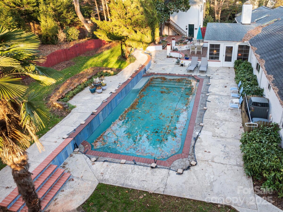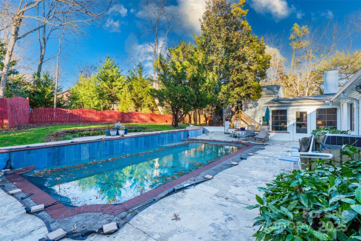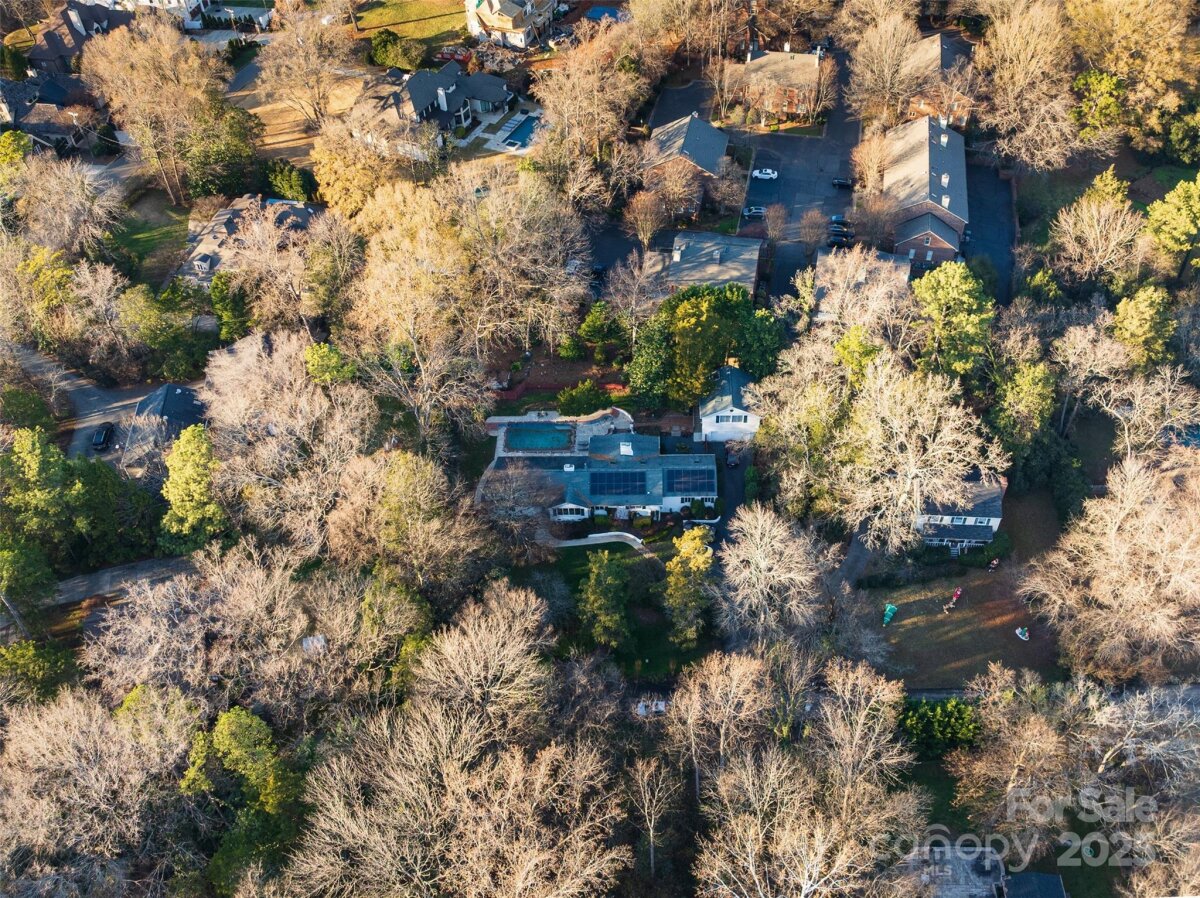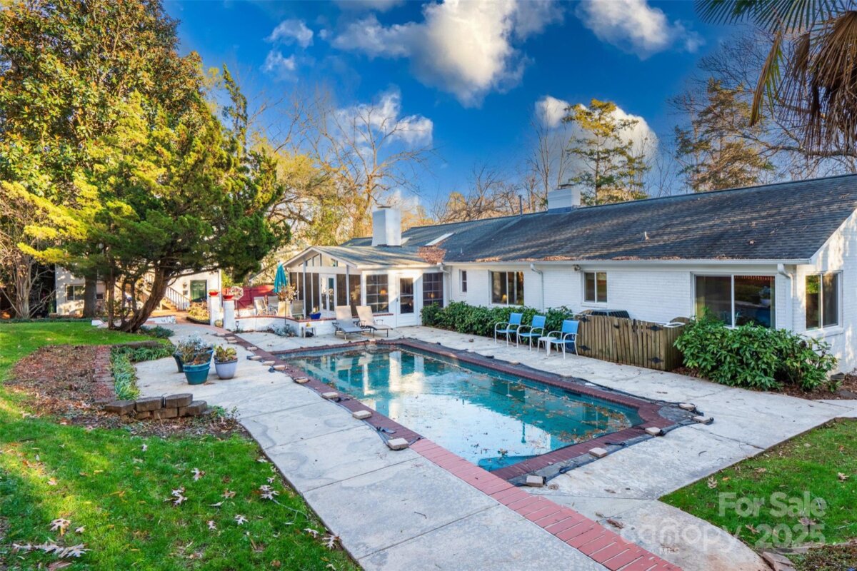 Private 1/2-acre oasis in the heart of south Charlotte at end of quiet street off Providence Road at Fairview. Renovate, new construction build, or move in to the well maintained, white painted brick ranch 4 bedroom/3 full bath with formal and casual living rooms, spacious sunroom, large renovated kitchen and 2 car garage with modern full kitchen/bathroom apartment above. All on one level living except detached full kitchen apartment is above garage with private entrance and can be used as a studio, guest house, short term daily rental, or long term rental income as there is no HOA or rental restrictions above city code. Full laundry hook ups off primary bedroom and in garage for apartment. Park in the oversized 2 car garage or dedicated spots near front door. As you enter the foyer a formal living room is to the right and informal family room straight ahead. All 4 main home bedrooms have closets though 2 are currently used as offices. The 3 seasons sunroom connected to the informal den sits right beside the inground chlorine pool with large hardscaped deck surround. The mature shade trees and professional landscape cover the entire lot with decades of carefully chosen Japanese maples and various specialty plants added over the years. No traffic to be heard or seen on this dead end with tremendous upside whichever route you determine to be highest and best use of property. Solar power system (2 Tesla storage batteries and 27 panels for full house power during an outage. A beautiful home with endless possibilities sure to be a great investment. Location, location, homecation!
