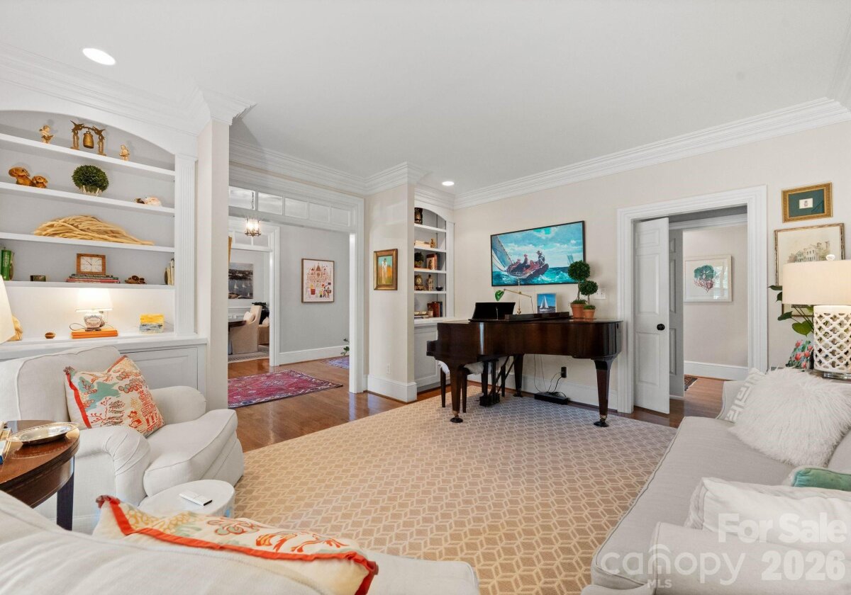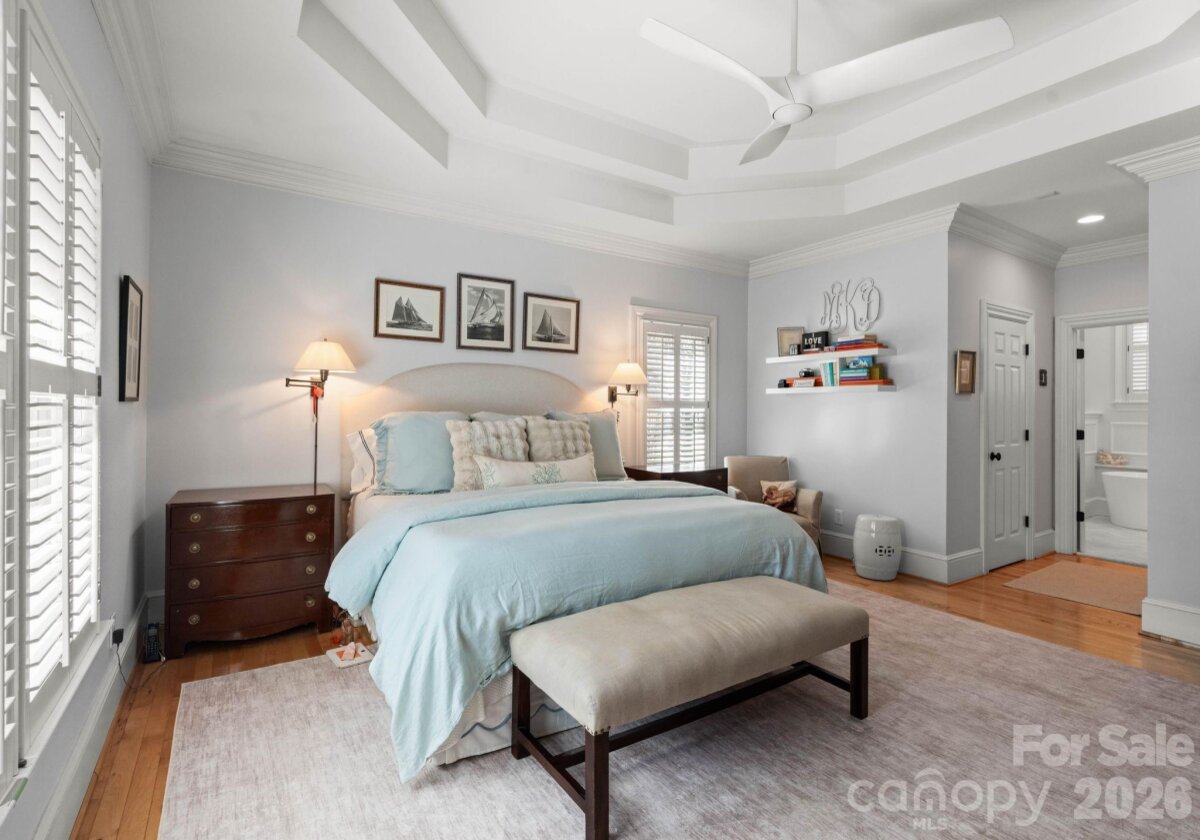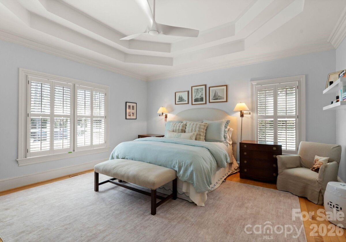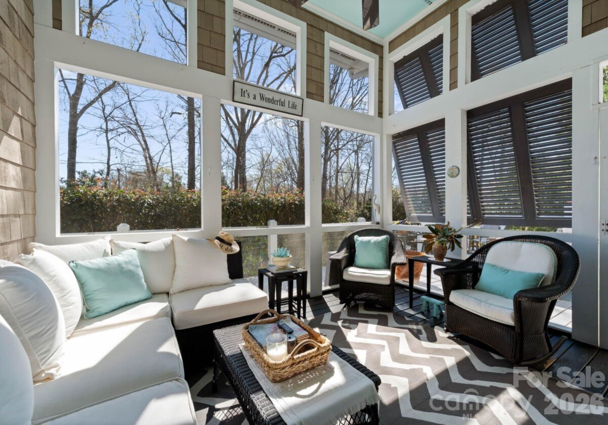 Welcome to this classic traditional home filled with natural light, charm, and style. A welcoming foyer off the covered front porch is flanked by formal living and dining rooms, leading into a stunning two-story great room with fireplace and built-ins that seamlessly opens to the updated kitchen with high end appliances, large island, wet bar walk in pantry and breakfast area. The main-level primary suite features dual walk-in closets and a spacious, updated bath. A convenient laundry room with sink is located just off the attached garage. Enjoy year-round living on the inviting screened porch with oversized shutters, which opens to a wooden deck overlooking a beautifully manicured, private, fenced backyard. Upstairs, two staircases lead to four additional bedrooms, two full baths, an oversized yet cozy bonus room, and a versatile rec space perfect for a home gym or playroom. Ideally located in a sought-after neighborhood close to SouthPark, shopping, dining, and top-rated schools.