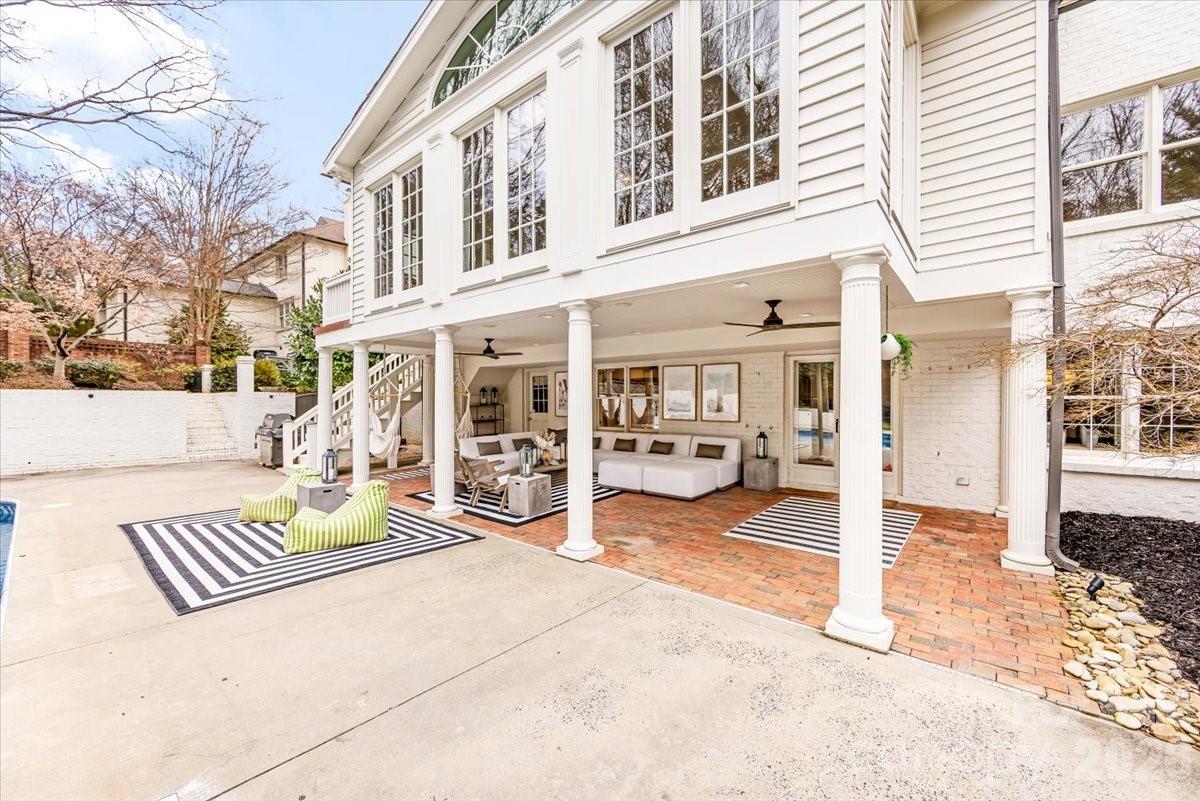 Stunning six-bedroom, 4½-bath home in desirable and established Winding Brook, tucked away on a quiet cul-de-sac with no through traffic. Featuring a private pool and an exceptional layout designed for comfortable everyday living and effortless entertaining. Enjoy the privacy, convenience, and true sense of community — a place where kids ride bikes in the street and neighbors feel like friends. Thoroughly renovated and beautifully maintained, this residence blends timeless elegance with modern comfort in every space, complemented by high-end designer chandeliers and luxury-grade fixtures throughout. The bright, open-concept Kitchen is a showstopper, featuring custom cabinetry, quartzite countertops, double large center islands, walk-in pantry, and Wolf, Sub-zero and Miele appliances. The Kitchen flows seamlessly into the Great Room and Sunroom with hardwood floors throughout the main level, creating the perfect layout for both everyday living and entertaining. The wall of windows overlooking the private backyard and pool wash the main living area with natural light and creates a space you never want to leave. The spacious Great Room has a gas fireplace with custom mantle, and opens through French doors into the spacious, light-filled drawing room. Across the Foyer, the Music Room could also be used as a formal Dining Room opening to the Kitchen. The Bonus Room on the main level features built-ins and large walk-in closet for ample storage and boasts a gas fireplace. The Laundry Room is exceptionally large and well-appointed with custom cabinets and lockers that are both beautiful and functional. Upstairs, the spacious Primary suite includes a luxurious bathroom and two grand-scale walk-in dressing rooms. Secondary bedrooms with hardwood floors and large closets with built in desks, share a modern full bathroom. Additional bedrooms are both generously sized and share a fresh bath with a shower tub combination. On the lowest level is the sixth bedroom that could be used as an exercise room with attached inviting and spacious full bathroom. The downstairs living area has the third gas fireplace and is spacious and walks out to the beautiful covered loggia. The private backyard oasis features a sparkling heated in-ground liner pool, expansive patio space, and multiple areas for lounging and dining. The covered terrace provides year-round enjoyment and effortless indoor-outdoor living. Side load two car garage with storage room caps off this exquisite home overflowing with charm, elegance and functionality.