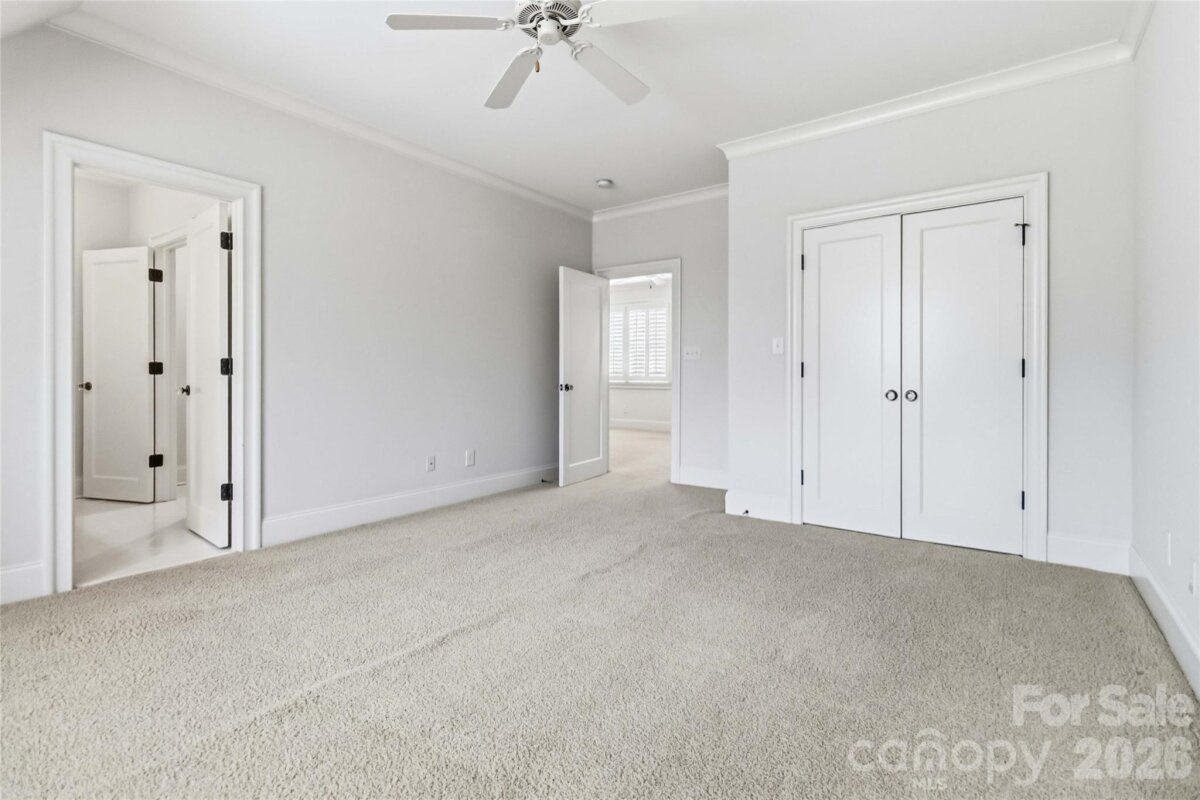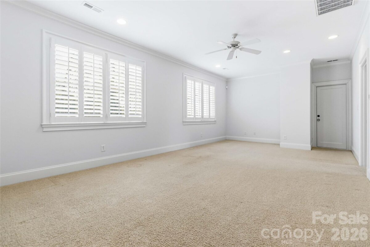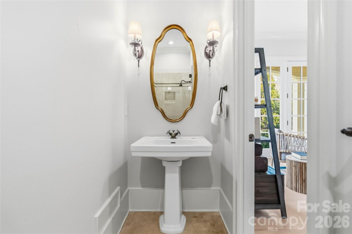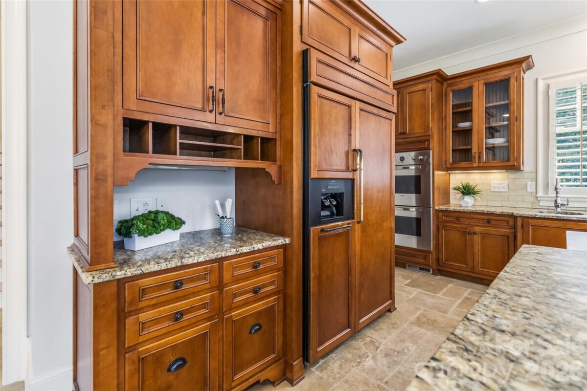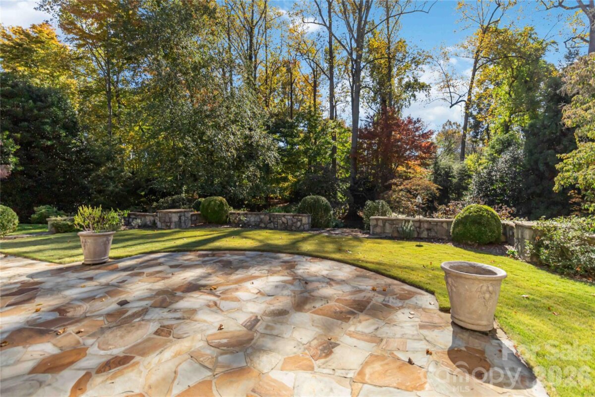 Welcome to a stunning single-family residence on over an acre of land, nestled in the heart of South Charlotte. This expansive home offers a perfect blend of elegance and functionality, ideal for both relaxation and entertaining. At the heart of the home, the kitchen offers ample space for culinary enthusiasts featuring custom wood cabinetry, high-end appliances, large island, and eat-in dining area. The formal dining room is perfect for hosting dinner parties, while the living room features oversized windows and doors out to covered porch overlooking serene and private backyard, a cozy stone wood-burning fireplace with gas igniter, and built-in shelving. The primary suite features large windows overlooking private backyard and entrance to covered porch, dual walk-in closets, a spa-like ensuite bathroom with a separate shower and tub, and a large custom double sink vanity with tons of storage. Dual walk-in closets provide generous storage space, adding to the home's practical design. Additional features include an additional bedroom on main with ensuite bathroom, a detached 3-car garage with huge attic space above for extra storage, workshop, or could become additional finished space. The expansive outdoor spaces are a true delight, with a private patio and yard, beautifully landscaped with a garden and lighting. Enjoy leisurely afternoons on the porch or entertain guests in the spacious backyard, perfect for outdoor gatherings.