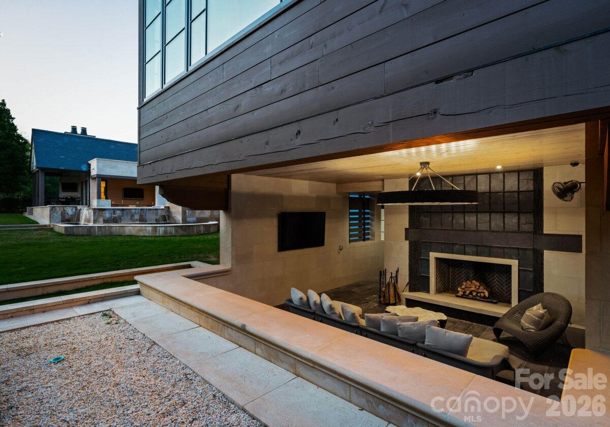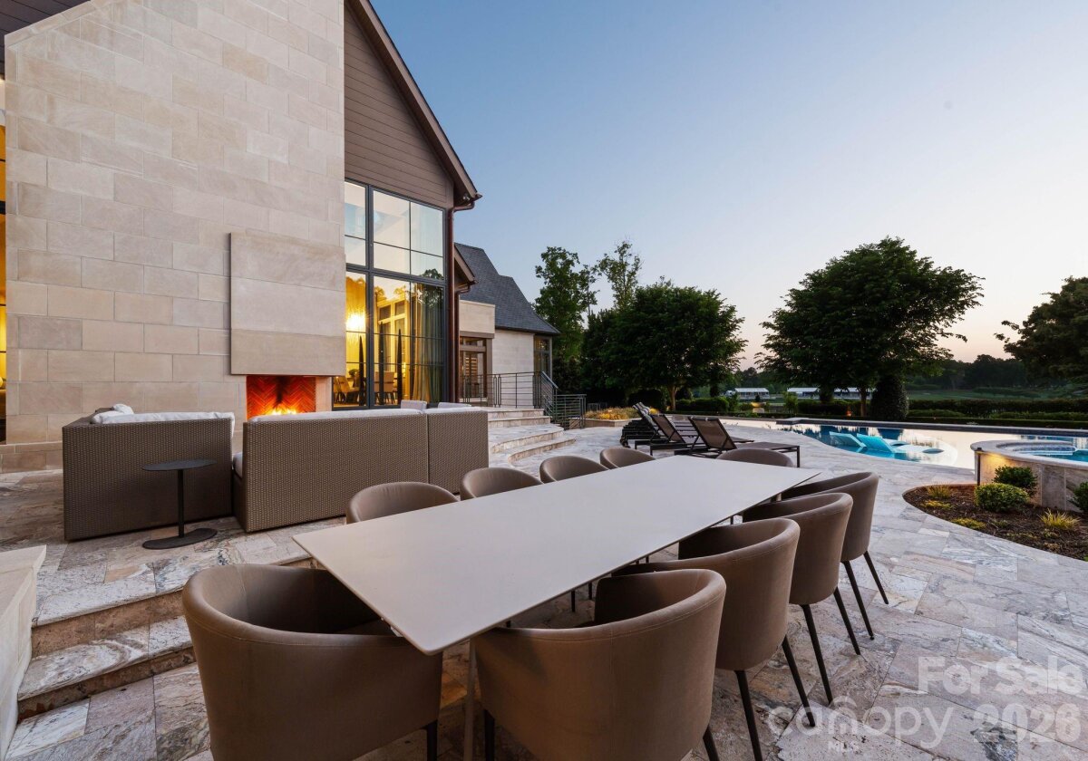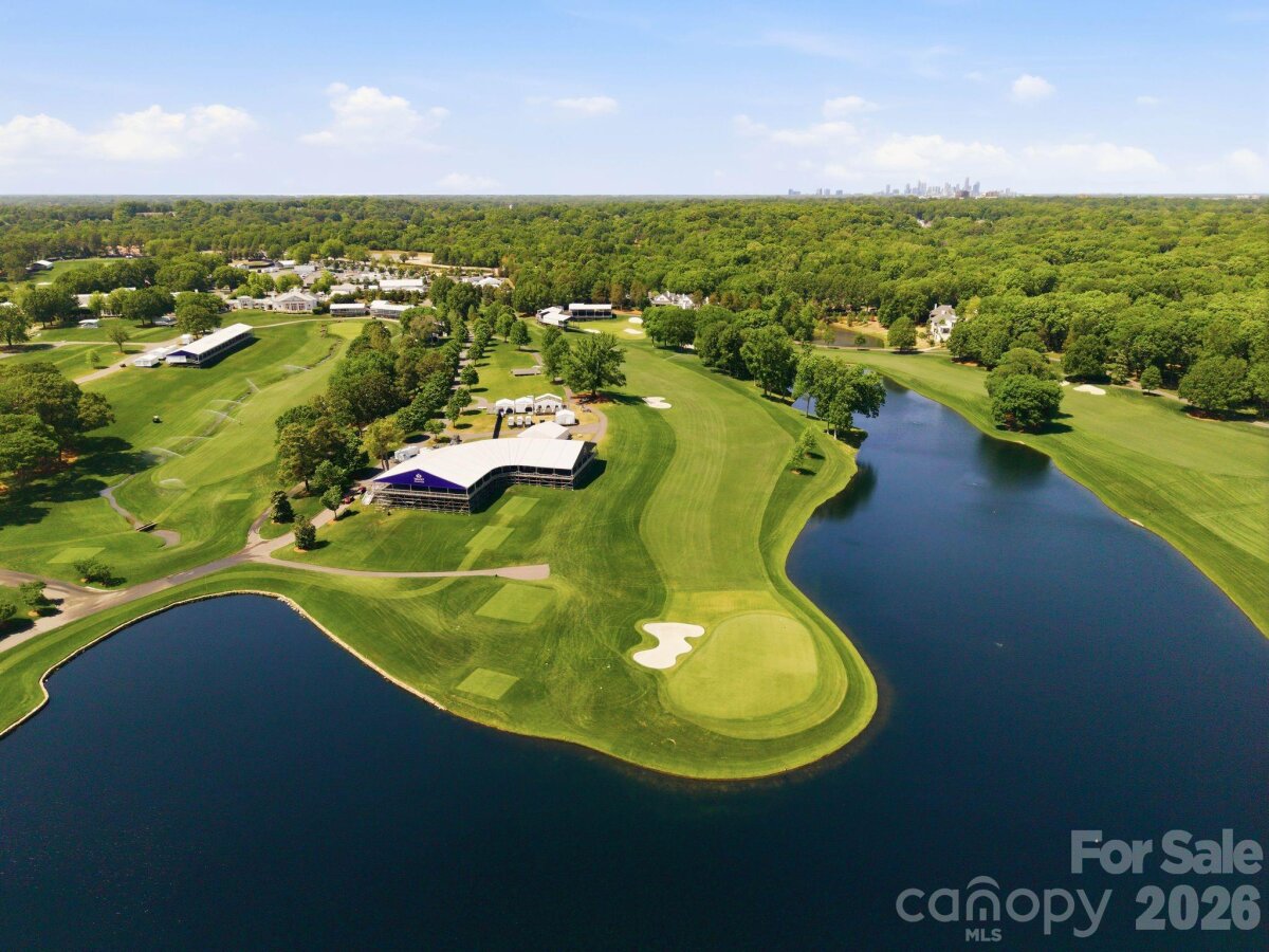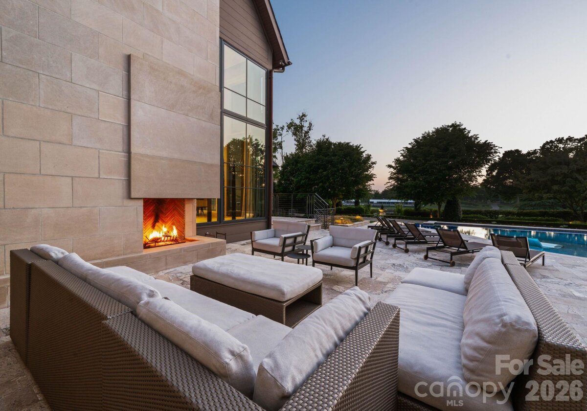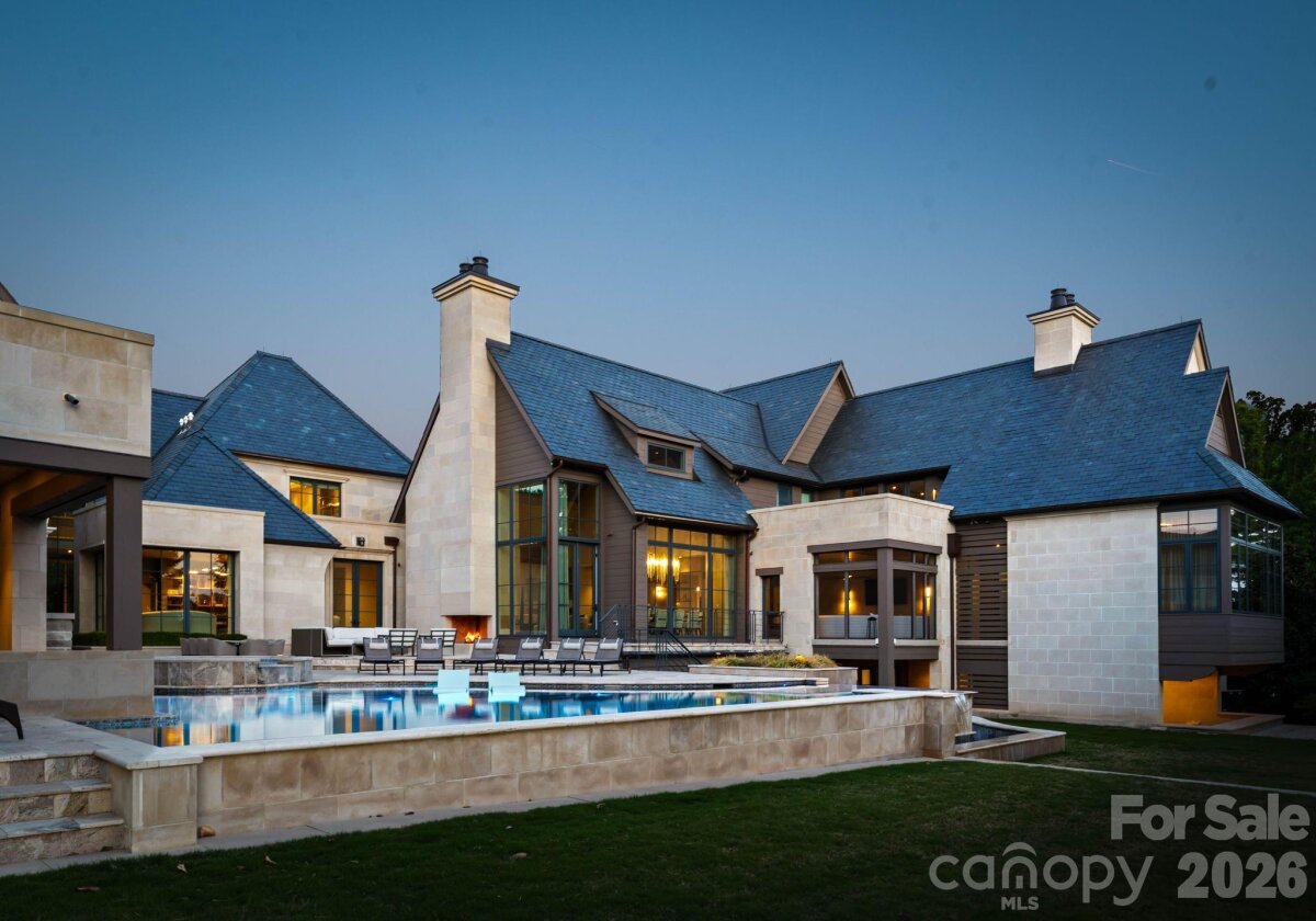Set along the championship fairways of Quail Hollow Club, host to the city's most prestigious PGA tournaments, 7318 Baltusrol Lane is one of the most exquisite custom homes ever offered in Charlotte. Encompassing 17,843 square feet of heated and cooled living space, this 6 bedroom, 6 full bath, and 6 half bath estate was built in collaboration with architect Harry Schrader, Arcadia Homes, and J Layton Interiors. Clad in 4" hand-cut limestone and framed by lush landscaping and lighting, the estate's exterior commands immediate reverence. A grand porte-cochère anchors the gated motor court, opening to two garages with custom cedar doors. The main level opens through a 10' custom entry door into a dazzling foyer dressed in Pierre Frey fabric wall upholstery with dual hidden doors concealing a powder room and a walk-in coat closet. A dedicated library off the foyer features architecturally designed shelving and sweeping views of the backyard. Just beyond the foyer, the great room rises to 21-foot ceilings with custom wood detailing and skylights, anchored by a limestone-surround gas fireplace and a hand-blown glass chandelier over a Hellman Chang dining table set. Flowing between the great room and kitchen, the bar area is appointed with marble countertops and seating for five, a built-in Wolf coffee system and display shelving. The chef's kitchen features full-height marble countertops and backsplash, a Wolf and Sub-Zero appliance suite, and Wood Mode full-inset cabinetry, supported by a fully equipped scullery with a commercial-grade walk-in refrigeration and dishwasher. The primary suite occupies its own private wing, offering a true sanctuary where 17-foot wood accent ceilings, a rock crystal fixture, and rift-cut oak pivot doors set a tone of quiet grandeur. Expansive windows frame picturesque views over the Quail Hollow course, flooding the bedroom with natural light, while automated shades offer effortless privacy. A hidden door connects privately to the upper-level office and owners' lounge below. The ensuite bath offers heated flooring, a marble shower, two private water closets, dual walk-in closets, and a seamless connection to the laundry room. Accessible from the primary suite and through nano-sliding doors off the kitchen, the screened porch extends the living experience outdoors year-round with ceiling-mounted heaters. The lower level delivers a spa-grade fitness suite with gym, sauna, steam shower, laundry, and private massage room; a Cinematech-designed soundproof home theater with tiered seating, projector, and a fully appointed bar; and a temperature-controlled wine cellar designed to host intimate tastings. The main wing's upper level features a Golfzon simulator room with a custom designed bar area. The adjoining executive office opens to a porch overlooking the fairways, accompanied by a secondary office with private staircase access connecting to the primary suite and lounge below. The guest wing spans two levels, offering five beautifully appointed bedrooms, each with ensuite baths, a dedicated laundry room, and a main-level lounge with backyard access. Outside, the estate unfolds across tiered, fairway-view grounds, featuring the resort-style pool and spa, and swim-up bar, surrounded by multiple patio dining areas, limestone surrounded fireplaces, and a full outdoor kitchen. The pool house features its own entertaining space, patio with a fireplace, powder room, and laundry, while the attached golf cart garage stands ready for direct access to the Quail Hollow fairways via a private gate. Ideally positioned minutes from SouthPark's premier dining, retail, top public schools, private schools, and major roadways, this estate offers the rare combination of a secluded, resort-style retreat within a private, security-patrolled community. Every room, material, and detail reflects a singular, unwavering commitment to craft, permanence, and the pinnacle of luxury living in Charlotte.