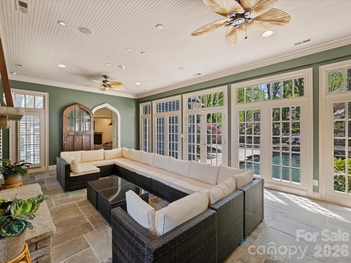 Welcome to 8226 Fairview Road — an elegant estate set on 1.5 acres in the heart of SouthPark. Tucked behind a charming brick wall, this distinctive home offers timeless architecture, privacy, and an open floor plan for modern living. A circular driveway, gas lanterns, lush landscaping, and covered side porch create a striking first impression. Inside, a curved staircase leads to a two-story living room anchored by a stunning stone fireplace. With six fireplaces throughout, the home offers warmth and character across multiple entertaining spaces. The updated kitchen opens to a cozy keeping room, while the sunroom overlooks the private backyard and resort-style pool. Flexible living areas include a large bonus room with bar and full bath, dedicated office space, and a large third floor with private bedroom, bath, and office. The main-level primary suite features serene pool views, large walk-in custom closets, and a spacious bath. The outdoor living space is great for entertaining. Features include a pool, spa, outdoor fireplace, grilling area, and expansive backyard. This 6 bedroom home offers 5 full and 3 half baths and is ideally located just minutes from SouthPark’s premier shopping, dining, and conveniences. Zoned for top-rated Charlotte-Mecklenburg schools.