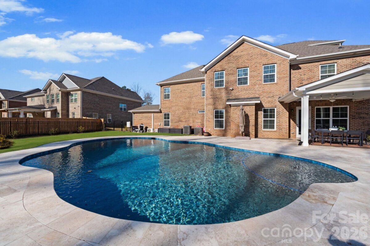 Stunning Executive Home in Sought-After Weddington | Top-Rated Schools Welcome to this exceptional executive residence in the heart of Weddington, where luxury, comfort, and location come together seamlessly. Situated on a large, private lot backing to wooded views, this home offers refined living both indoors and out—perfect for everyday living and memorable entertaining. The main level showcases a spacious open-concept kitchen and great room, highlighted by stainless steel appliances, an oversized island, and a butler’s pantry that connects beautifully to the formal spaces. A first-floor guest suite provides ideal accommodations for visitors or multigenerational living. Upstairs, the primary suite is a true retreat, complemented by three generously sized secondary bedrooms, a loft, and a versatile bonus/flex space—perfect for a home office, media room, or play area. The third floor features a large bonus room, offering endless possibilities for recreation or relaxation. Outdoor living is elevated with a resort-style in-ground pool surrounded by travertine decking, creating a private backyard oasis ideal for summer gatherings or quiet evenings at home. Hard-wired internet in dining room, office, great room, second floor bonus room and single car garage. The single car garage also has a mini-split so could be used as a gym or shop. Home is also wired for outdoor cameras. Additional highlights include a 4-car garage, abundant storage, and thoughtful design throughout. Conveniently located near top-rated Weddington schools, premier shopping, dining, and everyday amenities, this home truly has it all. A rare opportunity to enjoy luxury living in one of Union County’s most desirable communities.